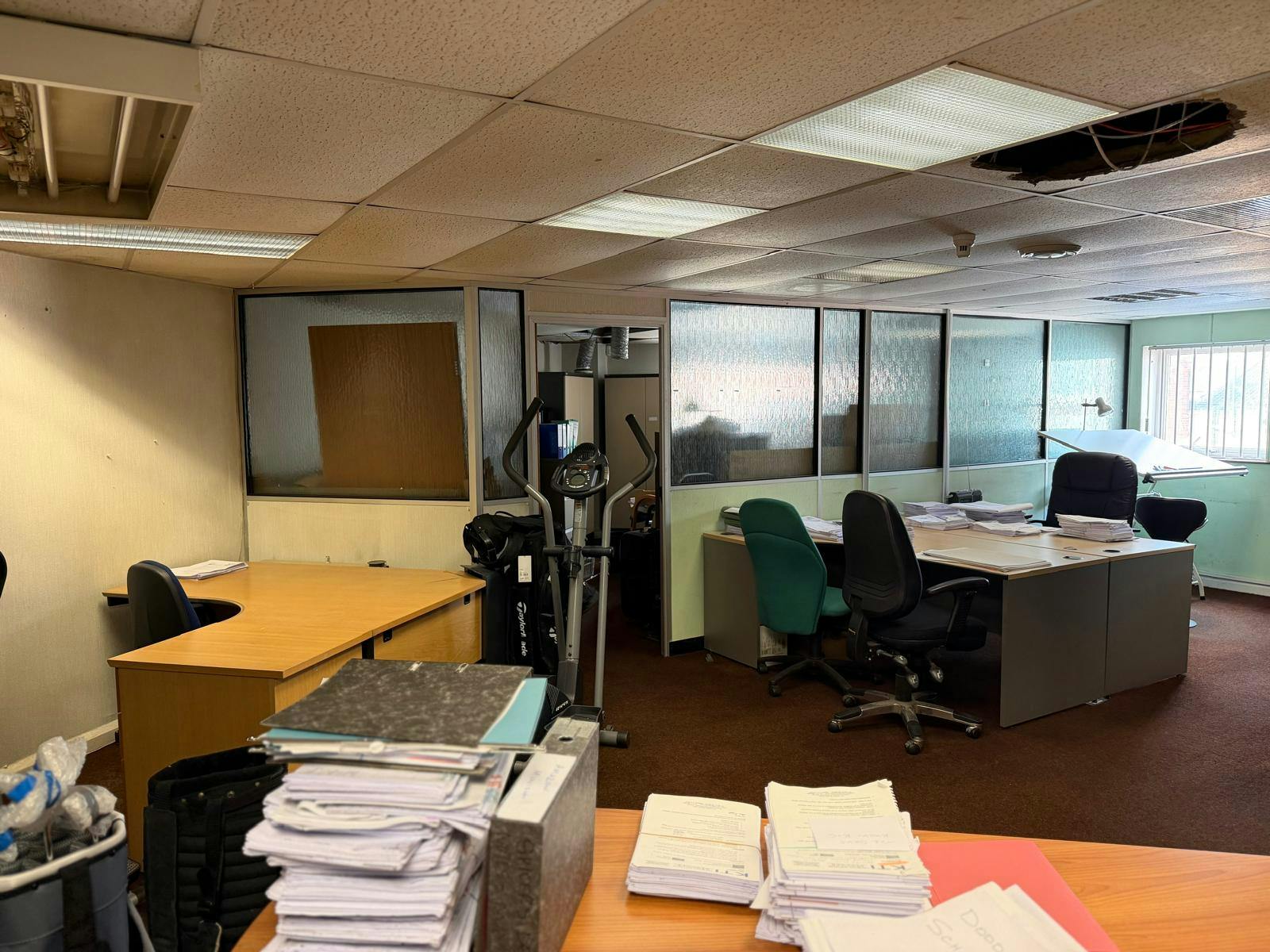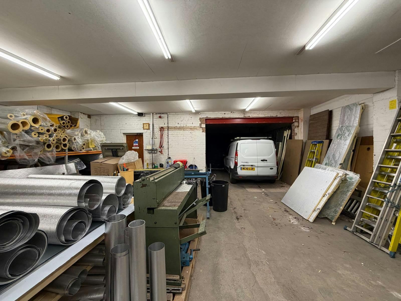 The ground floor provides a functional open-plan workshop/warehouse area with concrete flooring, brick elevations and a large electronically operated roller shutter door fronting New Summer Street, allowing for ease of loading and vehicular access. The unit is accessed via a pedestrian entrance leading into a reception area, which in turn opens into the main workshop and provides staircase access to the first floor.