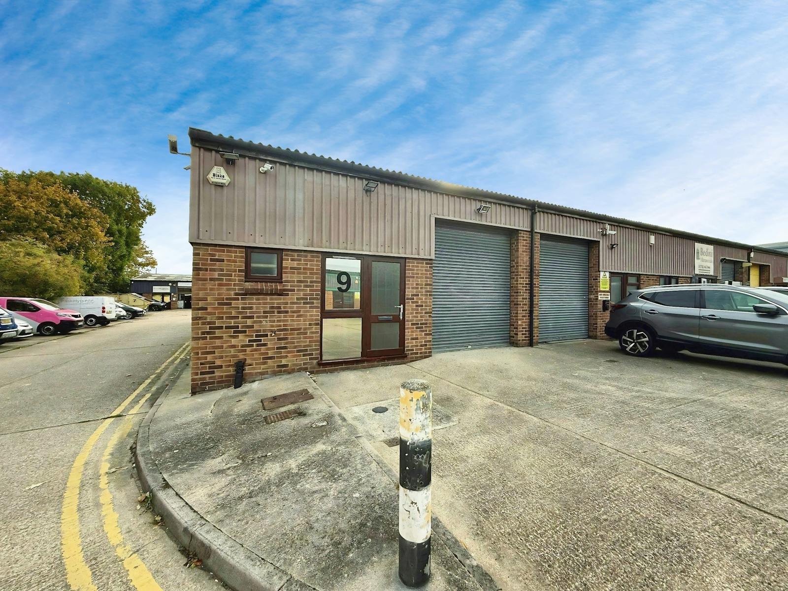 This end-terrace unit offers open-plan industrial space, featuring a roller shutter for loading access, a separate pedestrian entrance, a small office area, and W.C. facilities.