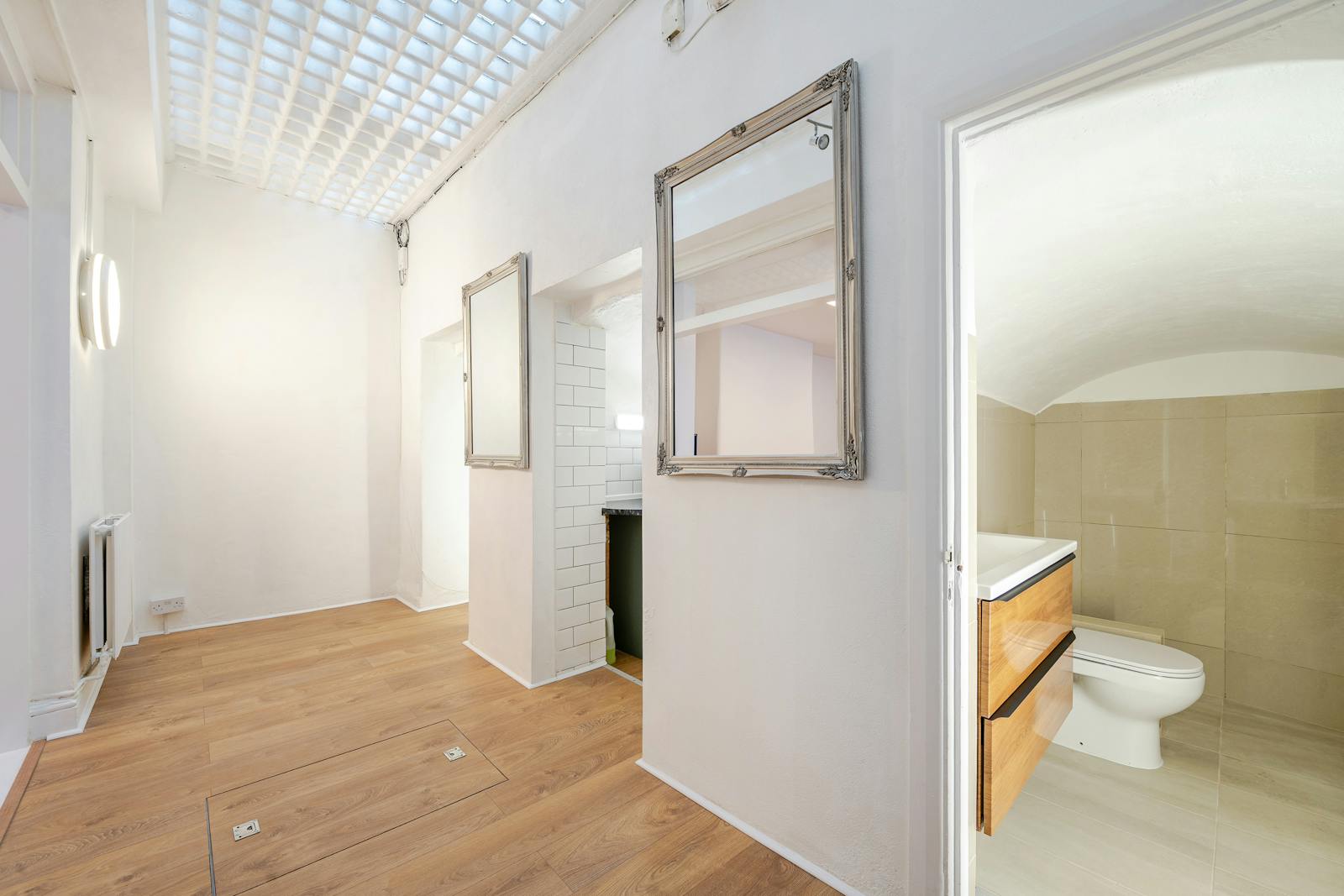 The property is set over part ground and basement floors of this period building and benefits include wood effect flooring, air conditioning, good ceiling height, LED lighting and gas central heating.