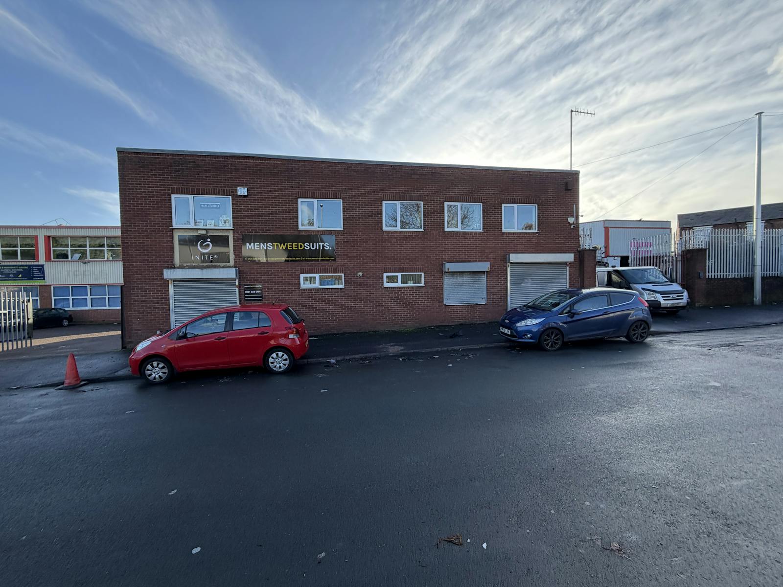 The office element is split to provide reception and open plan office, WC and stores on the ground floor and three cellular offices, WC and kitchenette to the first floor.