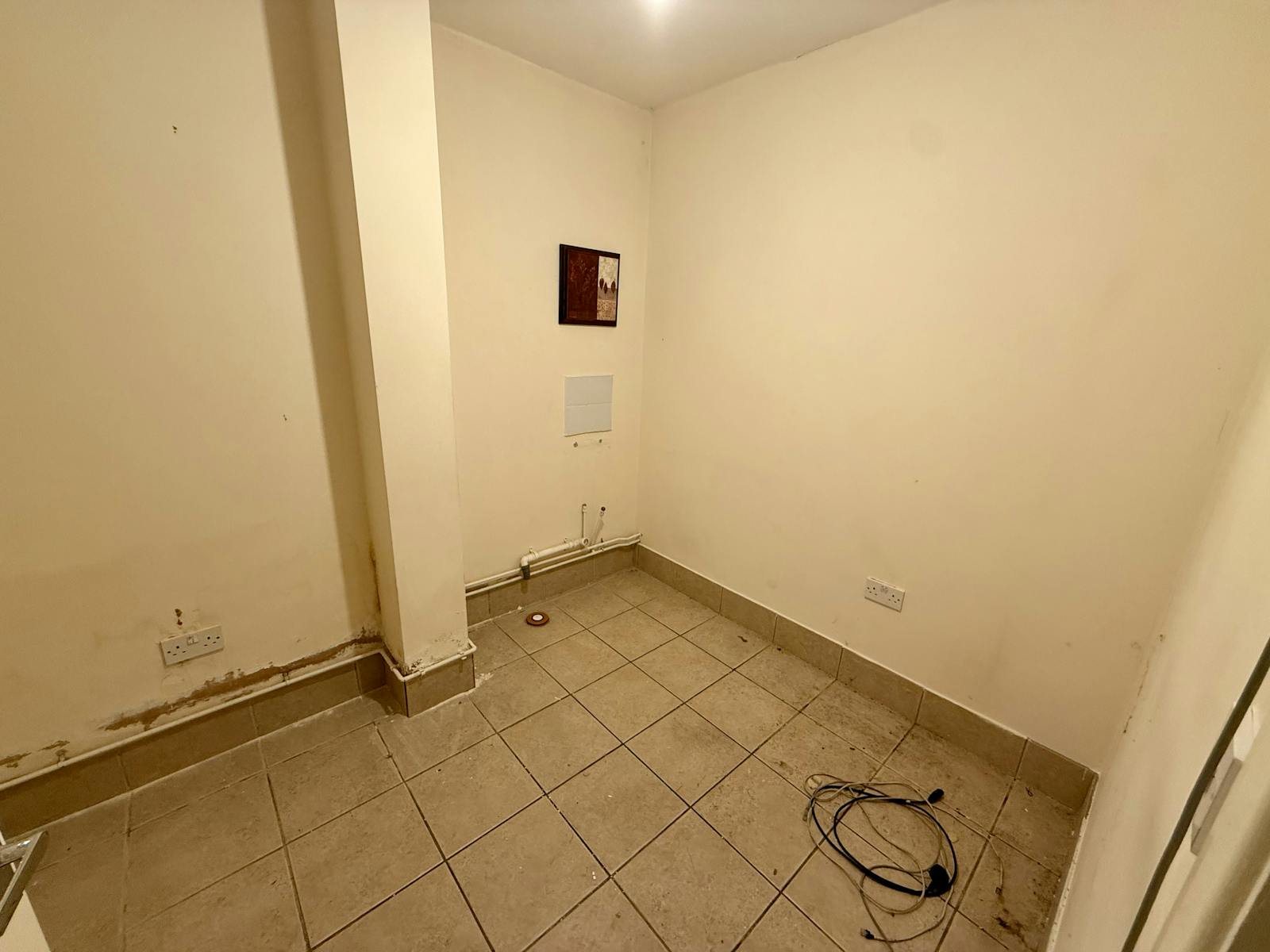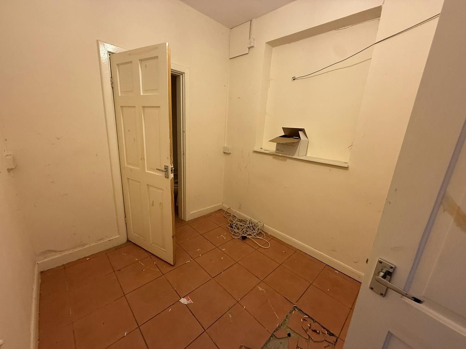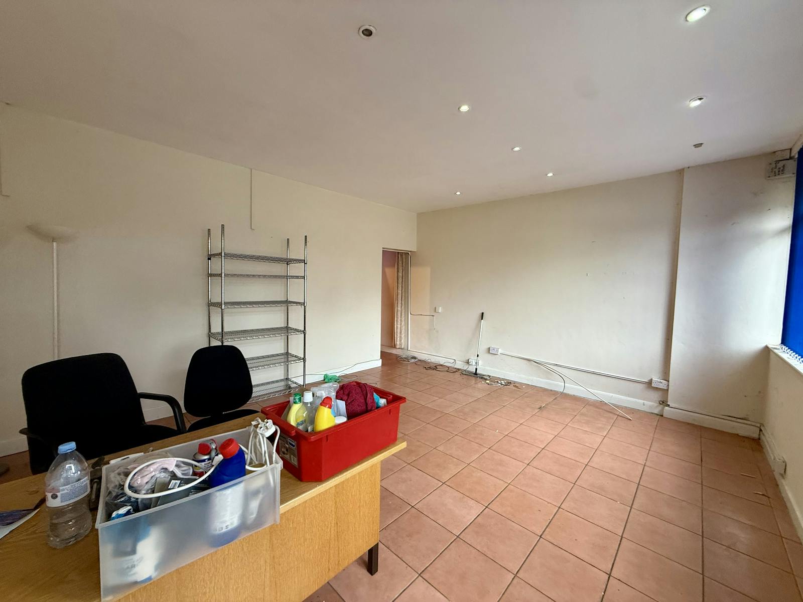 The ground floor comprises a retail frontage or office entrance leading to a main office area. There are three additional rooms suitable for office or storage use, two W/C facilities, and a kitchen at the rear.