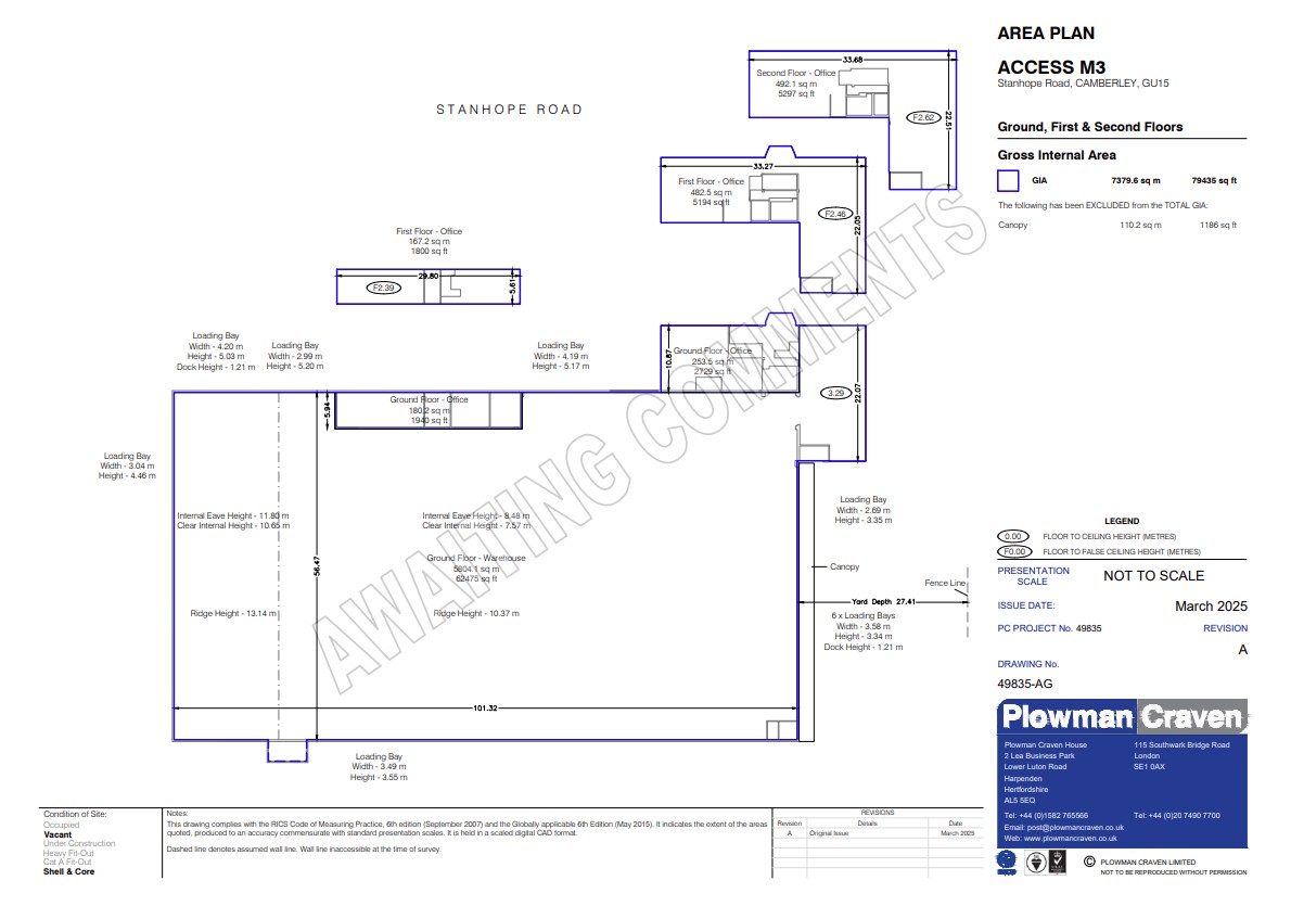 Access M3 comprises a detached HQ warehouse /industrial property which has been fully refurbished. There is a three storey section to the front of the warehouse which provides a mix of commercial space including offices at 1st and 2nd floors, and a main reception to the ground floor. The main entrance gate from Stanhope Road leads to the main building reception and a secure self-contained car park for up to 84 cars. There is also a dedicated HGV access to a large secure yard area for deliveries and lorry parking with 3 HGV loading doors. The side elevation to Glebeland Road has a separate secure yard with 7 HGV loading doors, 6 of which are Dock level loading doors.
