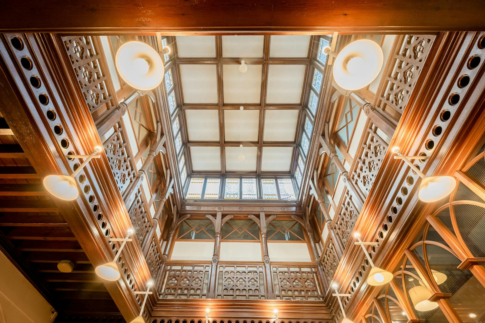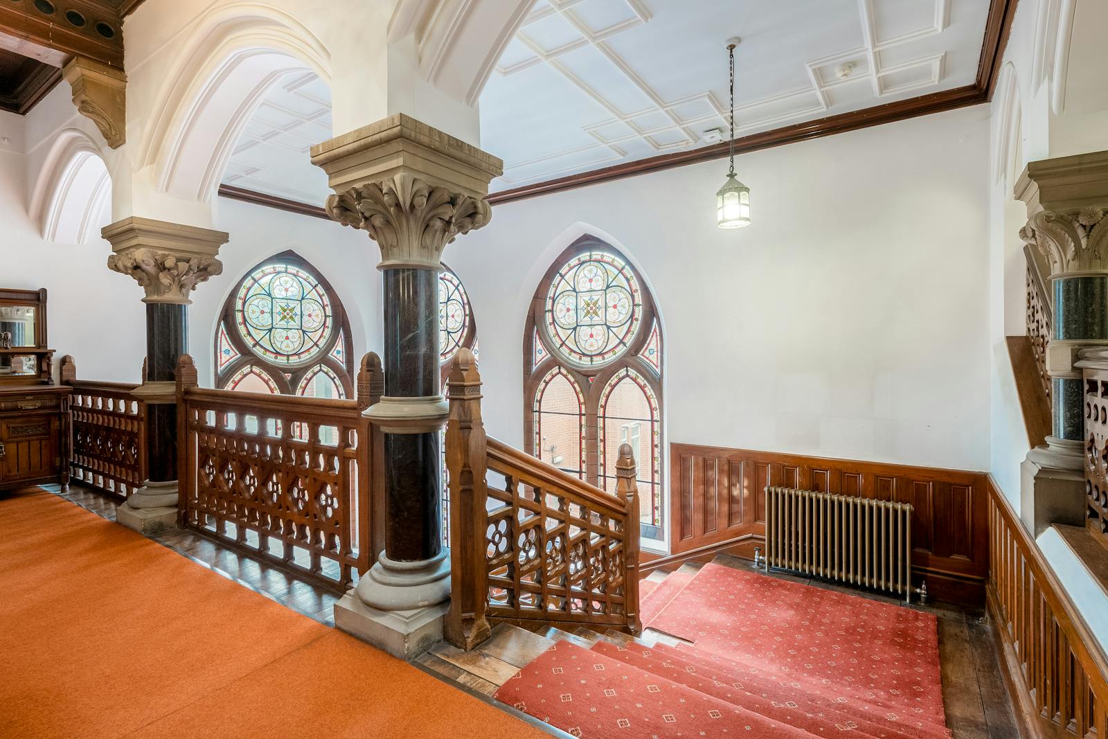 The Victorian mansion at the centre of the site provides an elegant focal point to the campus and features wonderful architecture with tall gables, impressive chimney stacks, ornate brickwork and stained-glass windows. Inside are grand former reception rooms and the magnificent reception hall with a dramatic oak staircase. Of particular note on the upper floors is the large atrium with galleried landings and crowned by a stained-glass lantern.