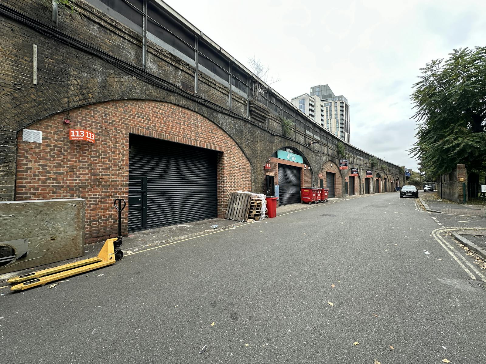 The arch is lined and accessed from Randall Road via a roller shutter door. Arch 113 has a separate pedestrian door fronting Randall Road.