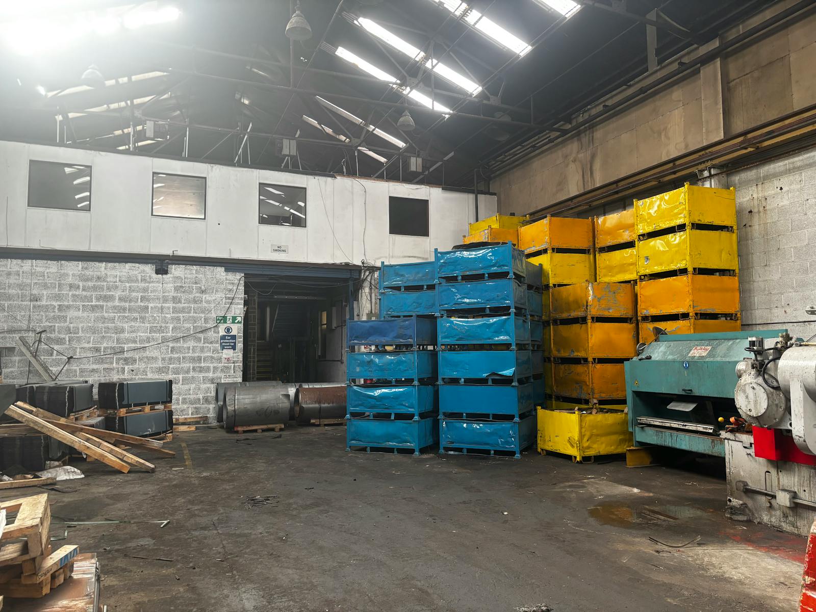 Integral offices comprising a mix of open plan and cellular space are provided along with WC and kitchenette facilities. The offices benefit from carpet tiled flooring and suspended ceiling with CAT II inset lighting.