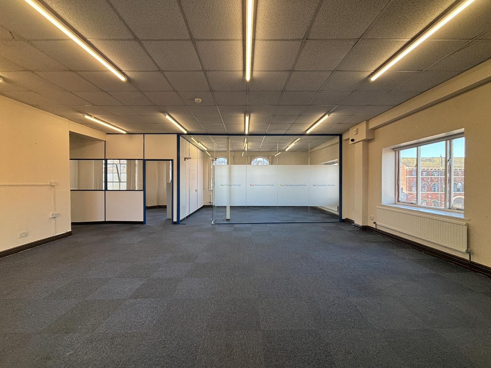 The first floor provides a range of offices, kitchen with connected meeting room and WCs.
