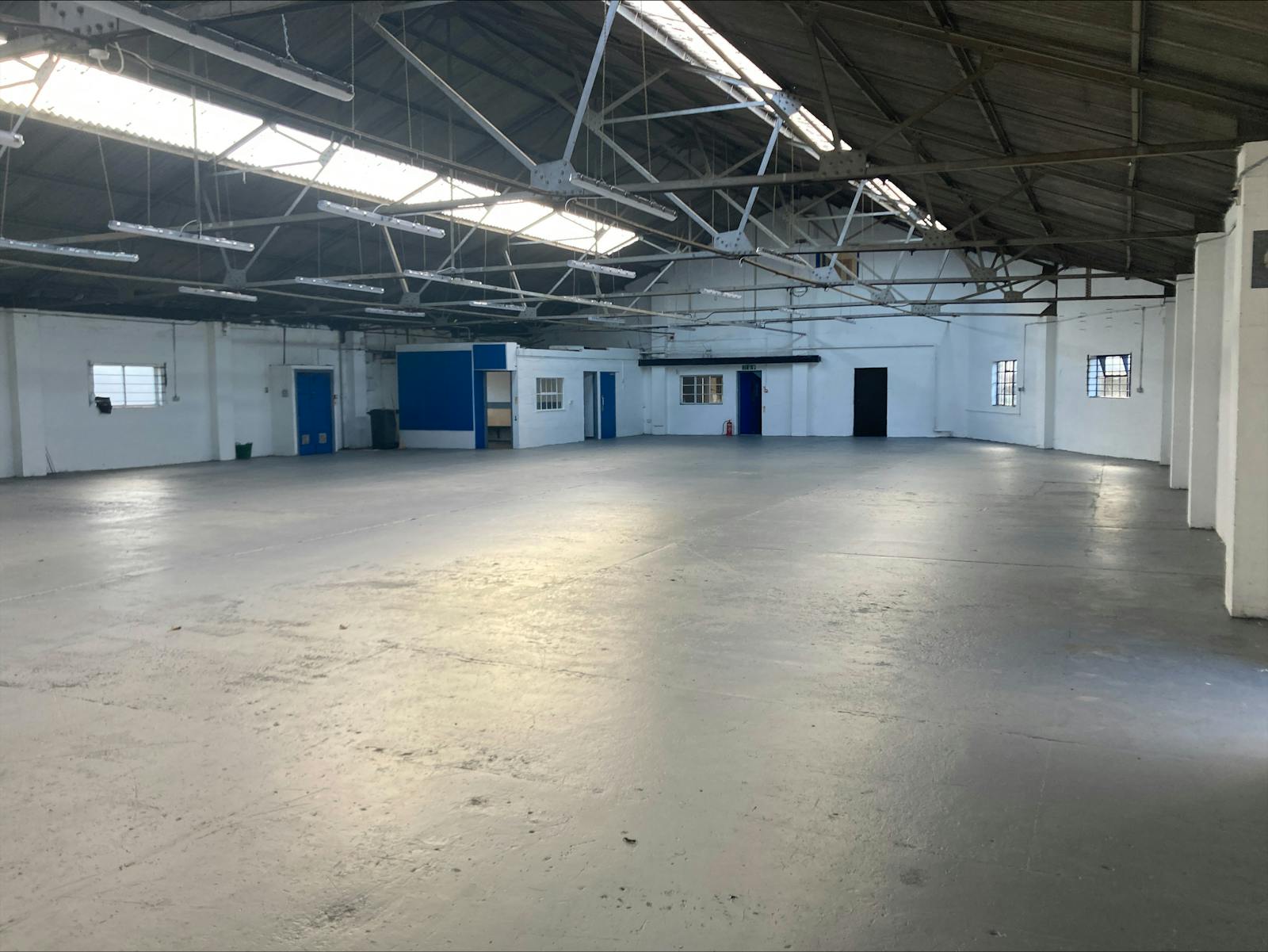 The building comprises blockwork elevations, underneath a pitched roof. The roof has approximately 10% translucent roof lights.