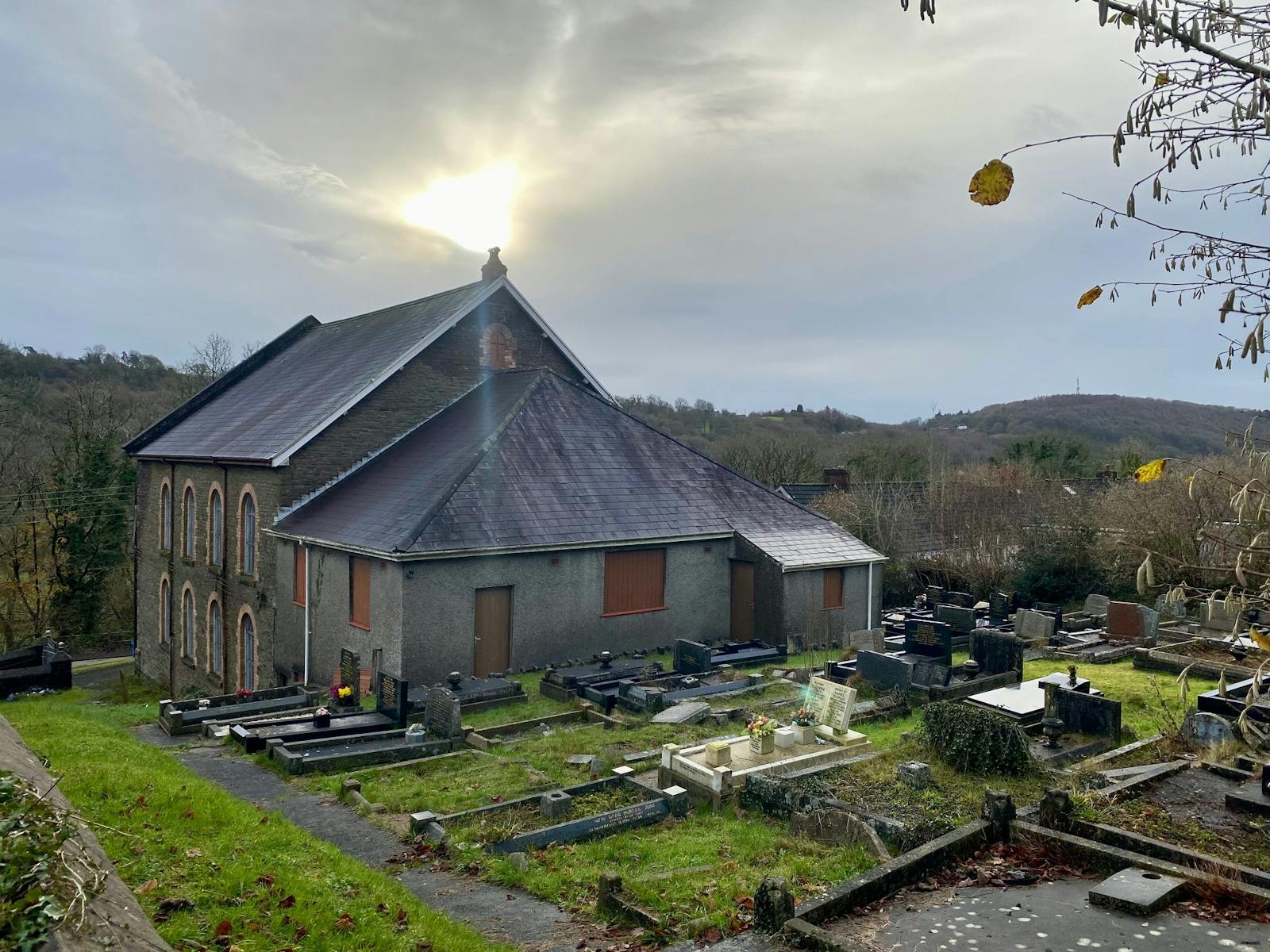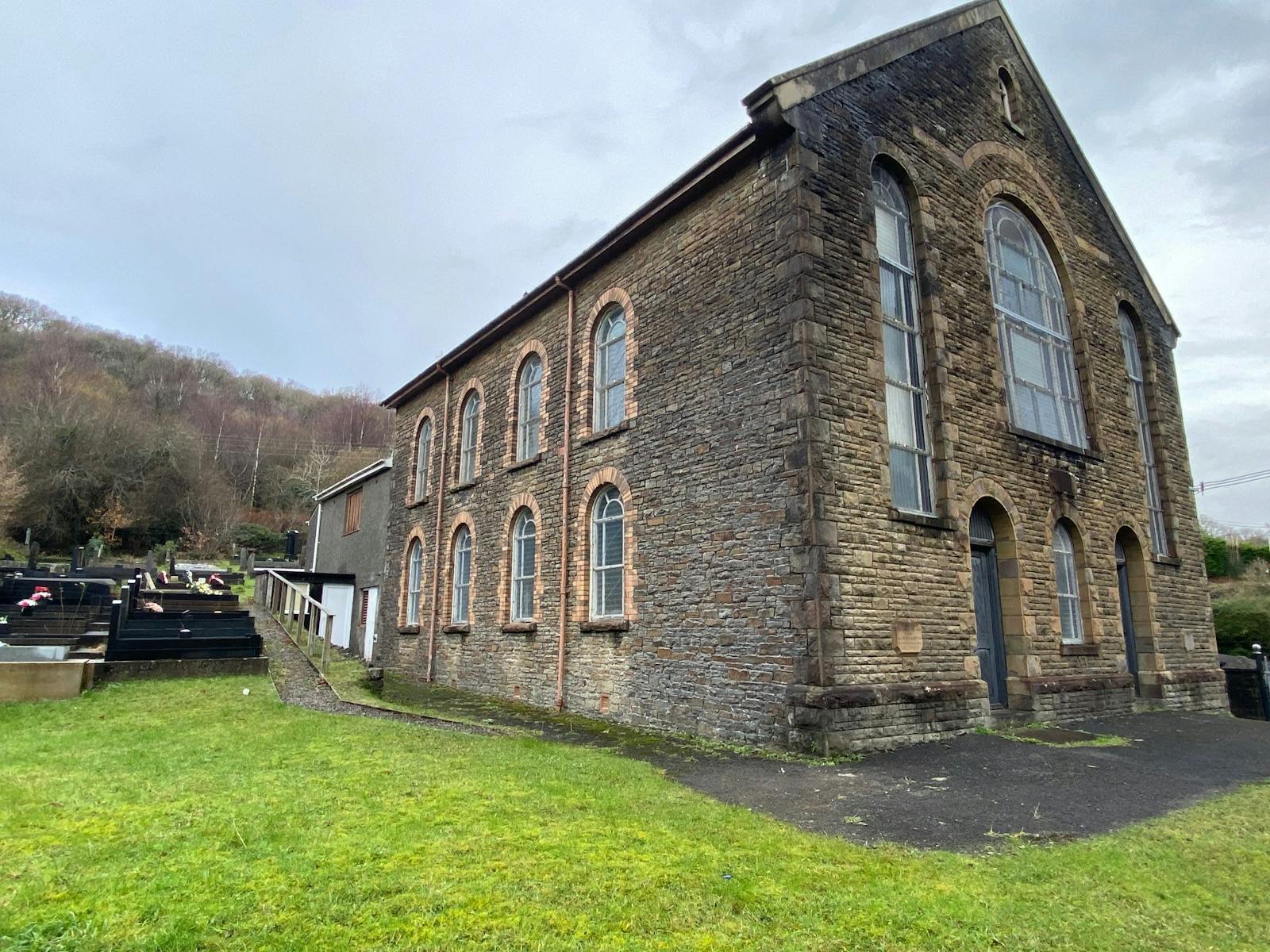 The graveyard for the chapel is located to the rear and southside of the chapel.