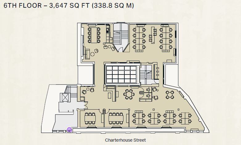 Both floors have been extensively refurbished to offer 7,716 sq ft collectively of fully fitted plug and play space. The building offers a space of exceptional quality, with a feature light atrium enhancing the natural light and pleasant views across Smithfield Market. Occupiers also have a large roof terrace providing panoramic viewing across London.