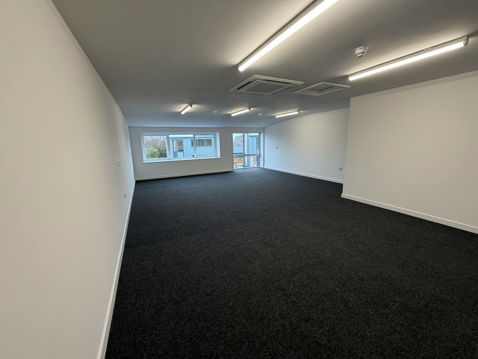 First Floor: Contemporary open-plan offices with air conditioning, carpet tiled floors and a fitted shower room.