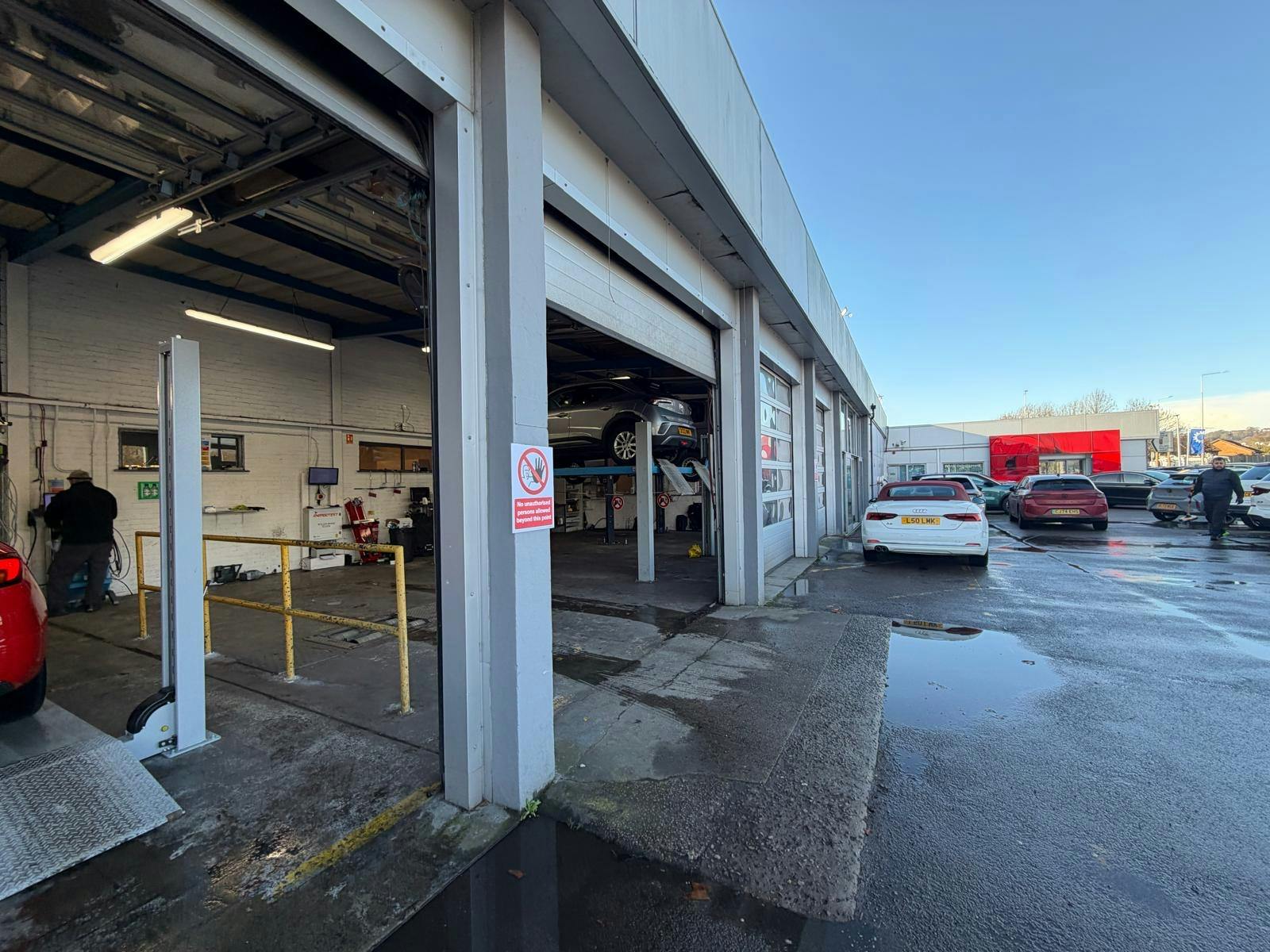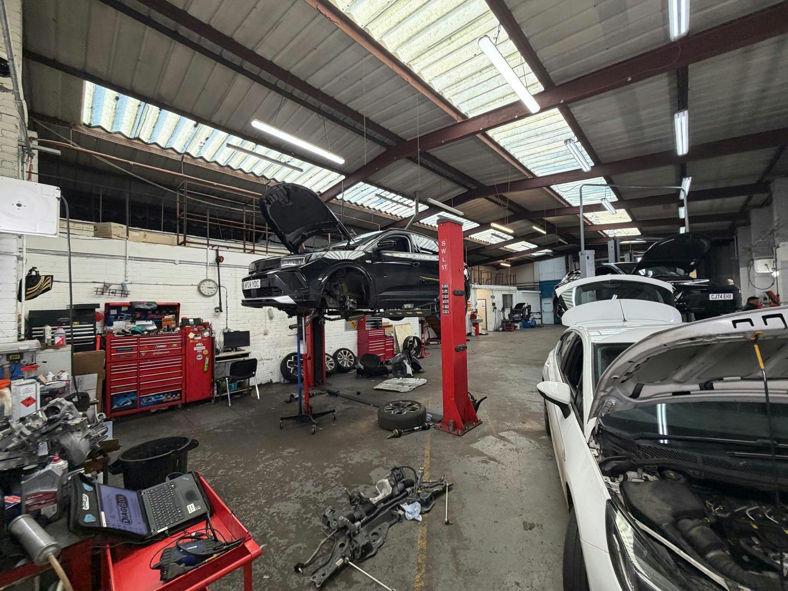 The property comprises a showroom, workshop, MOT Bay and further storage and welfare space, arranged across the site.