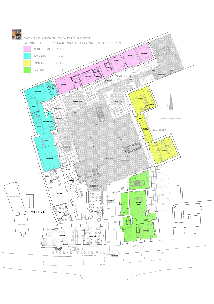• In accordance with approved planning, the pub/restaurant layout remains attractive with 50 bar/restaurant covers, 3 en suite letting bedrooms, manager’s 2 bedroom apartment, commercial kitchen, WC’s and cellars.