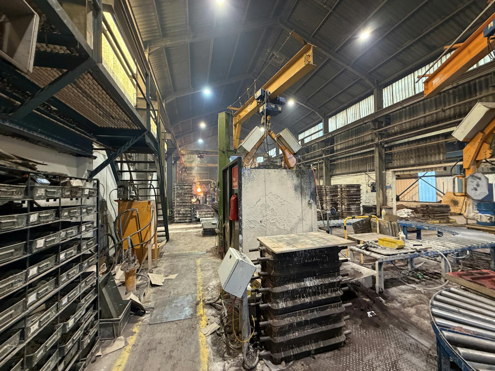 The second industrial building, the Aftercast Works, is believed to have been constructed in the 1950s and offers a more modern steel-frame, truss-roof design with solid concrete flooring. Its elevations combine brickwork with sheet cladding above, surmounted by a covered sheet-panel roof. A later extension provides additional staff welfare amenities, including kitchen and WC facilities. Both the Precast and Aftercast Works benefit from operational overhead travelling cranes, enhancing suitability for heavy industrial use.