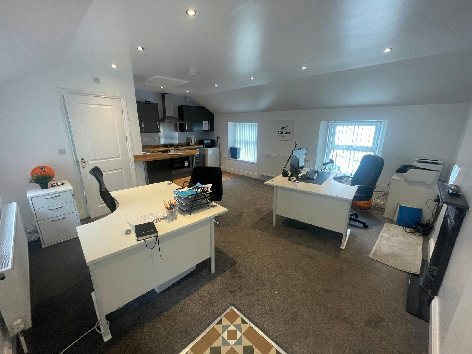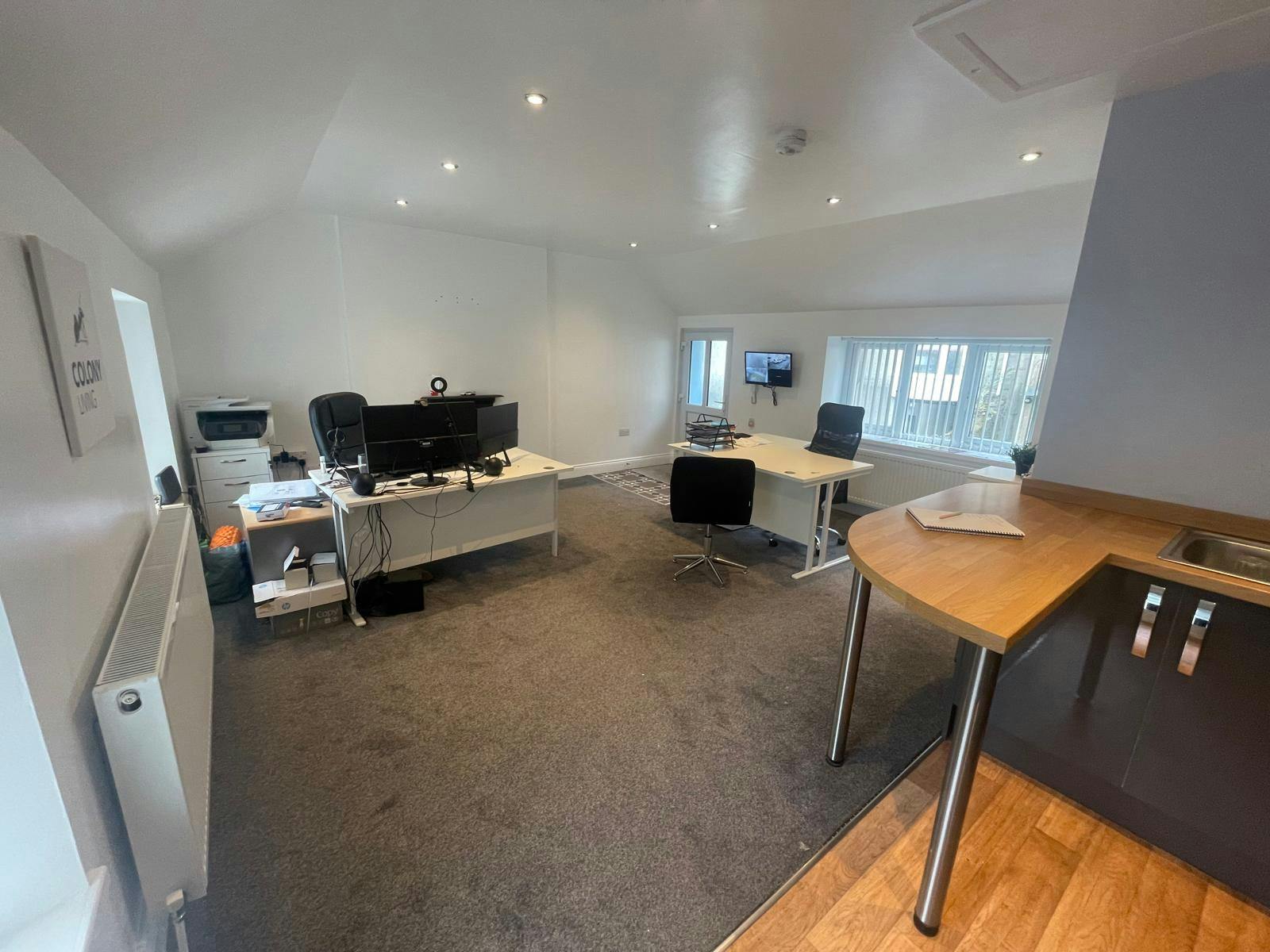 The first floor provides an open plan office, partially subdivided to accommodate a fitted kitchen area and a self-contained shower room with w.c facilities.