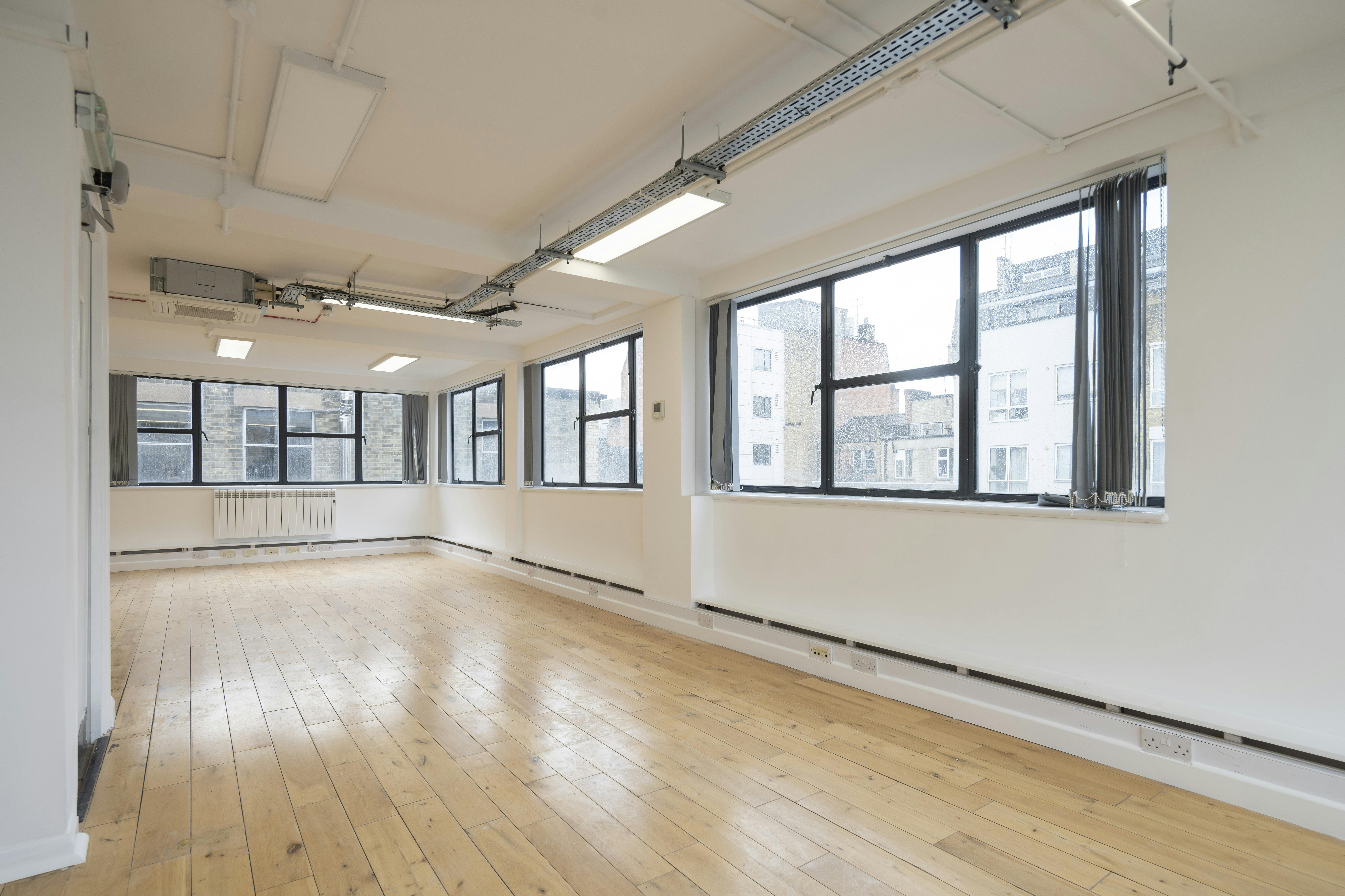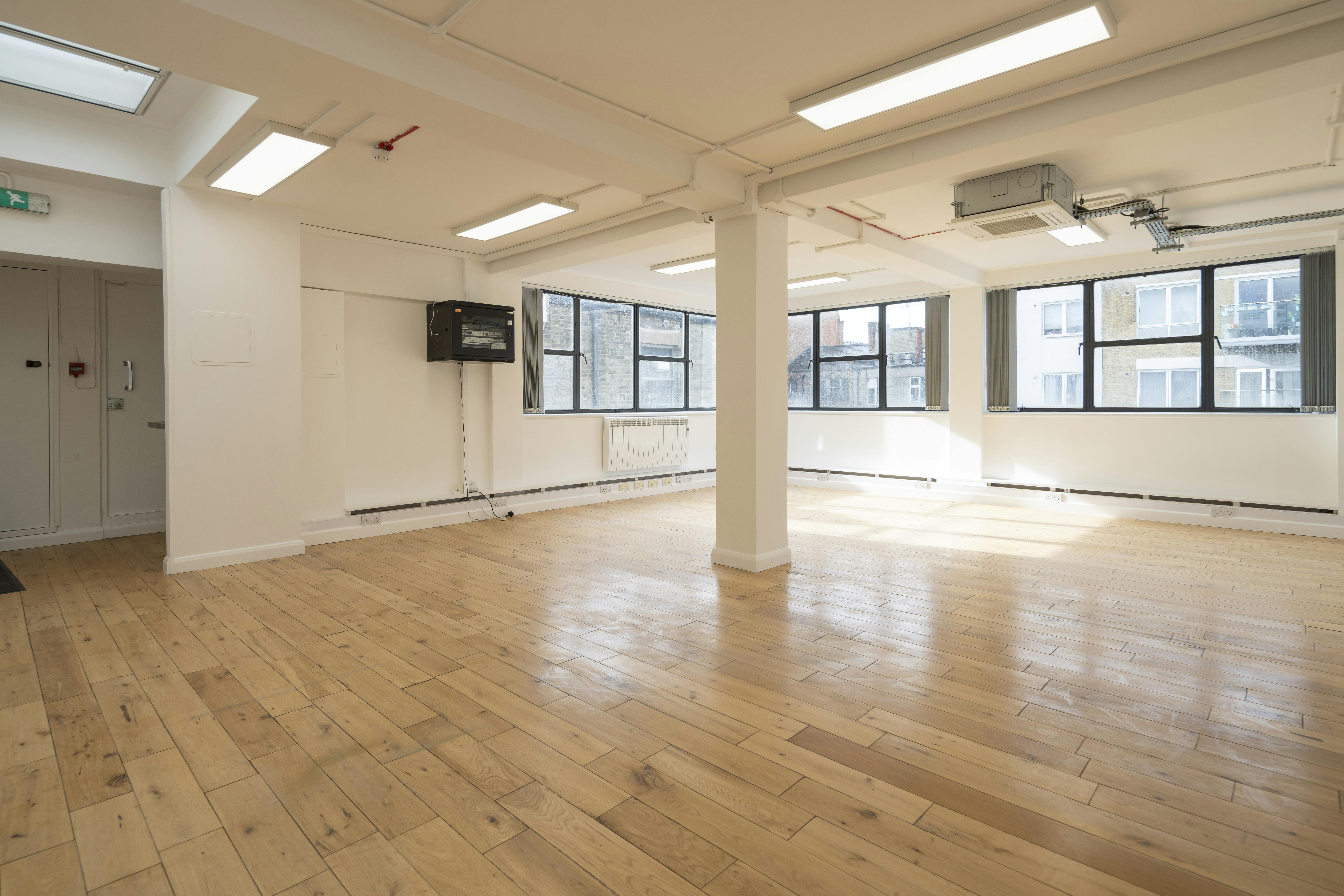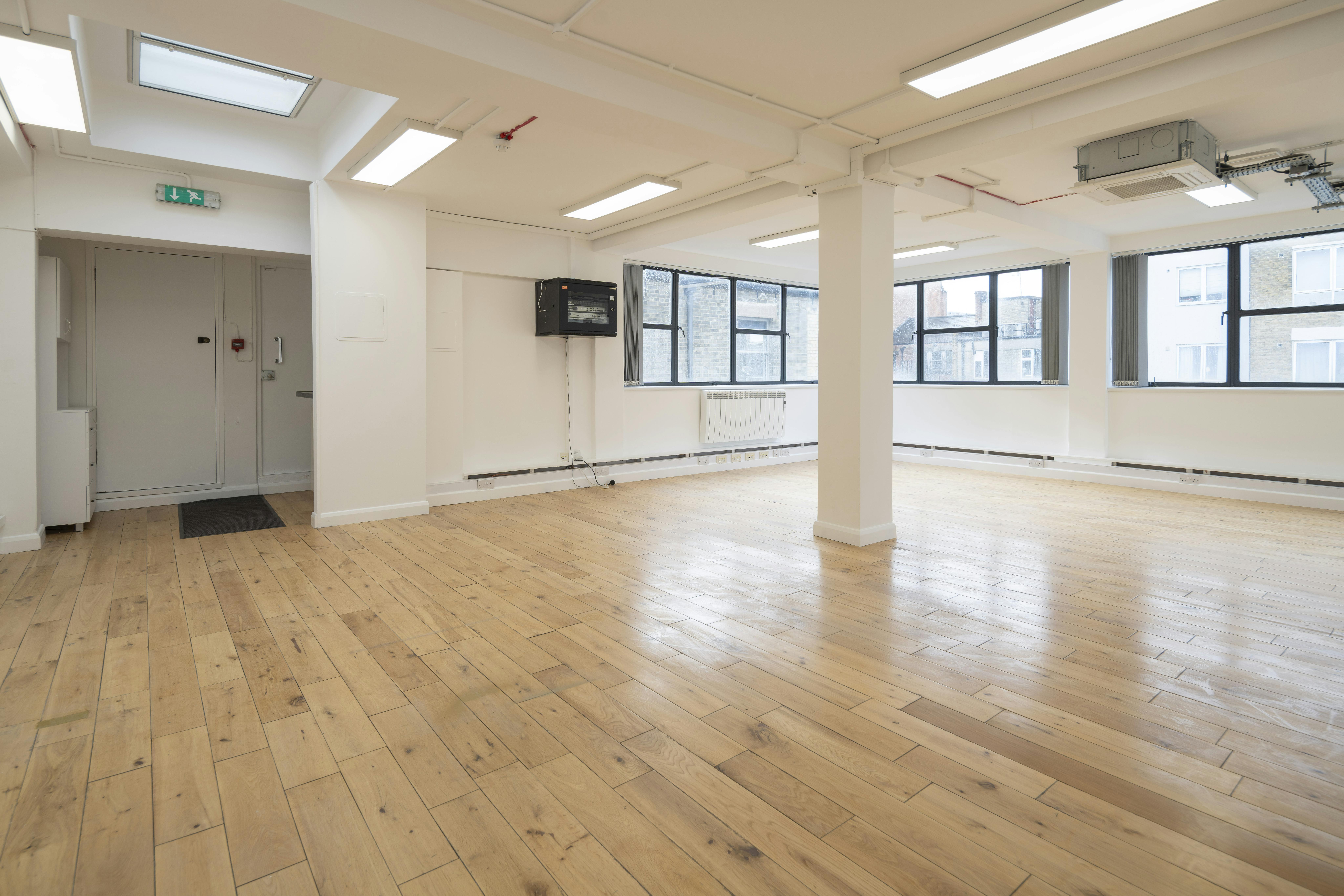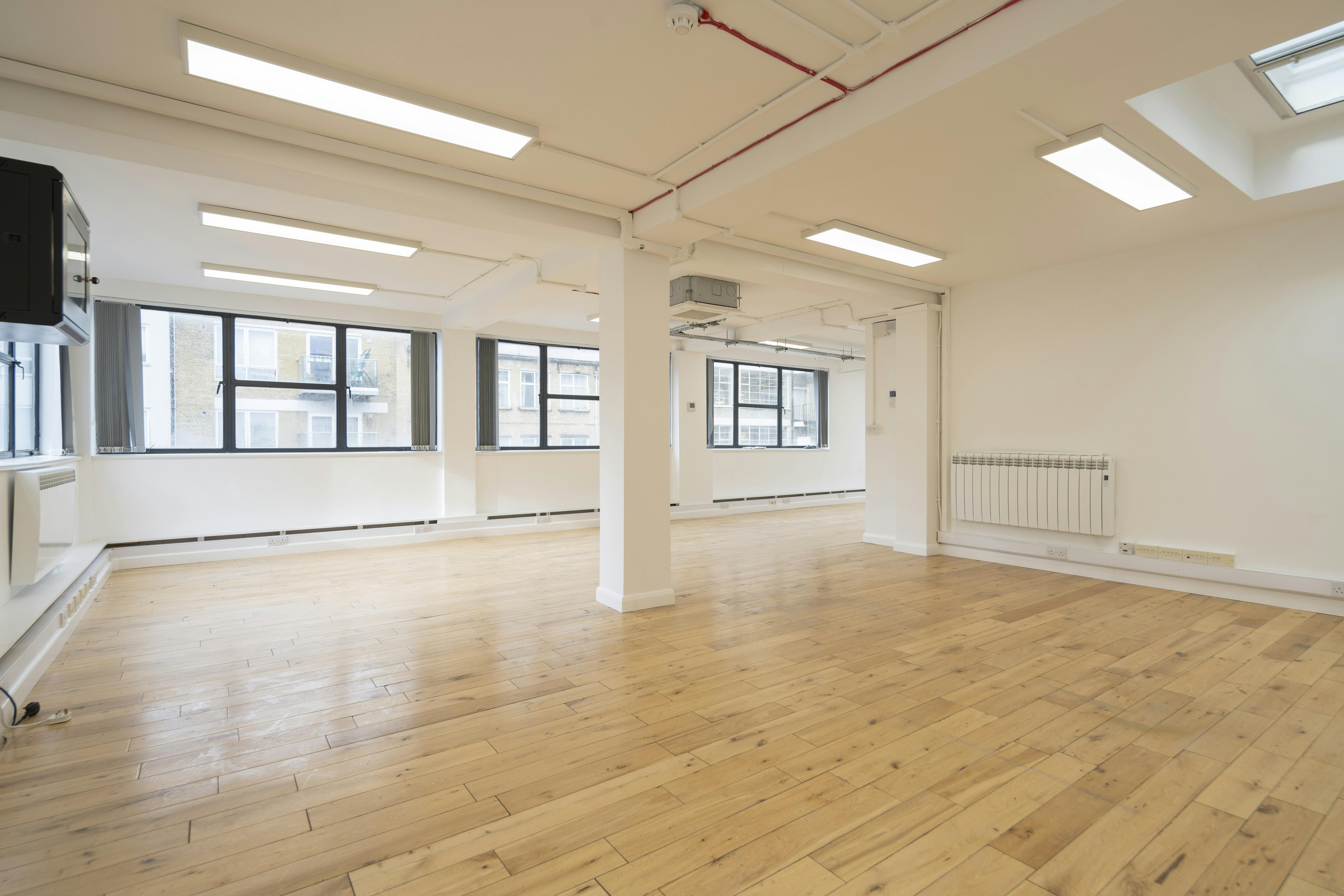 Chapel House, located at 18 Hatton Place, provides a convenient connection between Hatton Wall and St Cross Street and is just a four-minute walk from Farringdon Station. Each floor benefits from dedicated kitchen facilities, independent heating and cooling systems, perimeter trunking, and abundant natural light. The building also offers impressive ceiling heights throughout, creating a bright and spacious working environment.