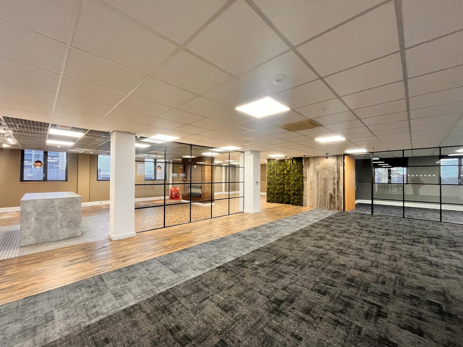 The vacant suites occupy the entire 3rd floor and part 4th floor of the property and have been fitted out to a high standard, offering a mix of open plan and glazed cellular offices. In addition, there are kitchen and staff break-out areas. In terms of specification, the suites benefit from Air Conditioning, Perimeter Trunking, Double Glazed Windows, Suspended Ceilings with LG3 Lighting and Modern Staff Amenities.