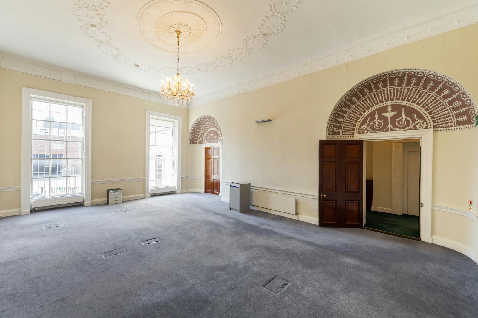 Clonmell House is of traditional brick and masonry wall construction, with suspended timber stairs and floors. The building retains extensive ornate ceiling plasterwork, including period cornice and centre rose plasterwork. The ornate ceilings on the first floor are particularly notable, along with the magnificent floor to ceiling heights and well-proportioned rooms. Impressive period mantelpieces can be found throughout. The property is in walk-in condition and benefits from a passenger lift.