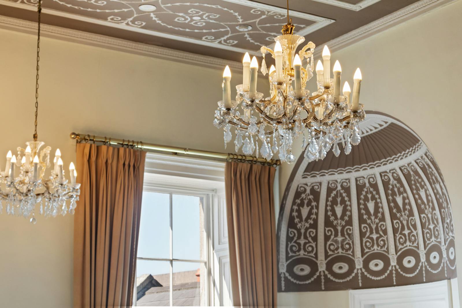 • Mixture of chandeliers and modern office lighting