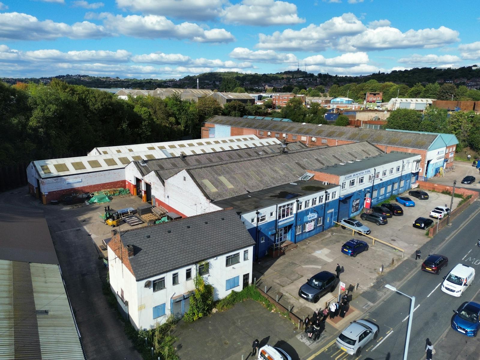 The estate comprises a substantial industrial warehouse that has been split to provide a number of industrial workshops and warehouses with a two-storey element to the front of the main building.