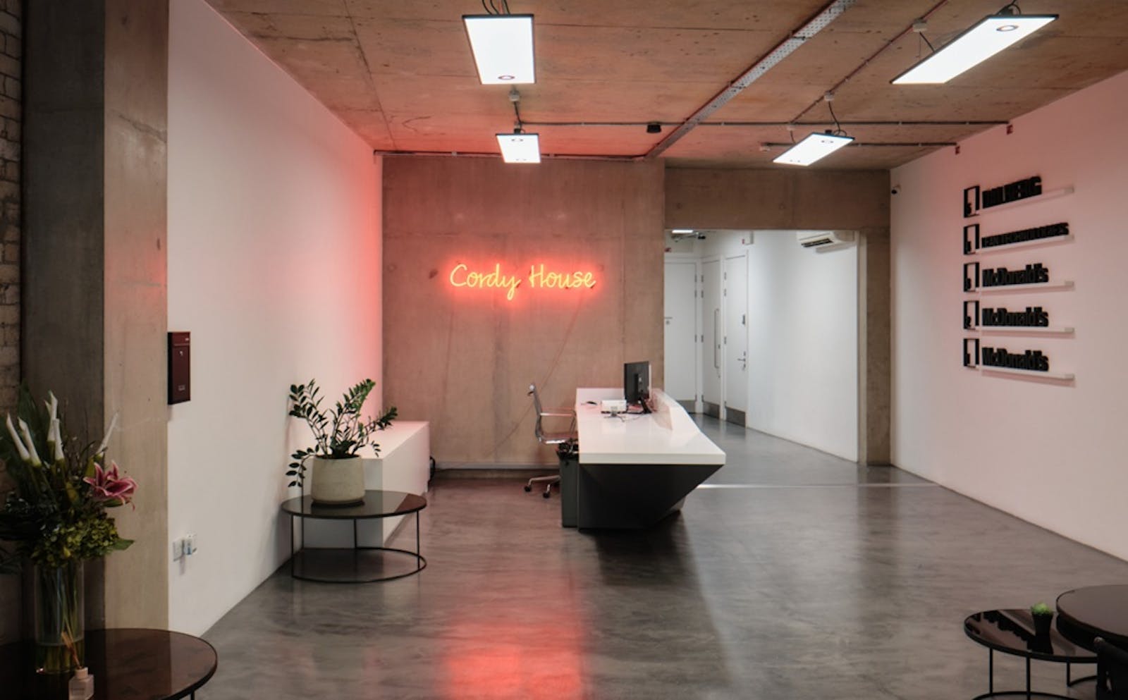 Cordy House offers a fully fitted workspace environment in the heart of Shoreditch — a district defined by creativity and cultural energy. Designed by Arcademy Architects, the building has been reimagined for modern business while honouring its past as one of London’s most iconic creative venues. The reception sets the tone: a pared-back loft aesthetic with industrial detailing and original artwork that celebrates the building’s legacy. It’s both grounded and inspiring — where craftsmanship and authenticity shine. Light-filled, flexible floors provide design-led workspaces that foster productivity, with exposed structures and refined finishes creating an environment that’s urban yet timeless. More than a workplace — Cordy House continues London’s creative story.