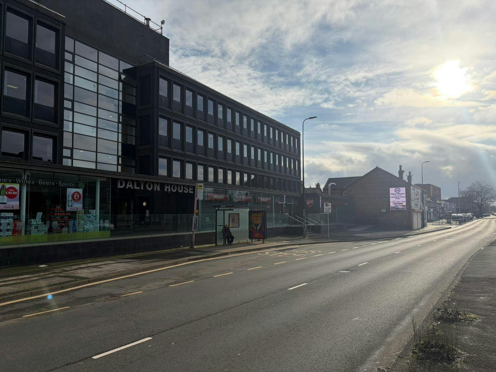 The property benefits from a prominent position facing Cross Street (A56), a primary thoroughfare connecting Sale from Altrincham in the south to the M60 orbital motorway, with Junction 7 roughly half a mile to the north. Manchester city centre lies approximately three miles further on. Dane Road Metrolink stop is less than 5 minutes walk away.