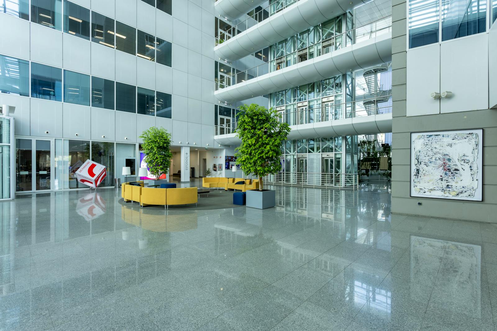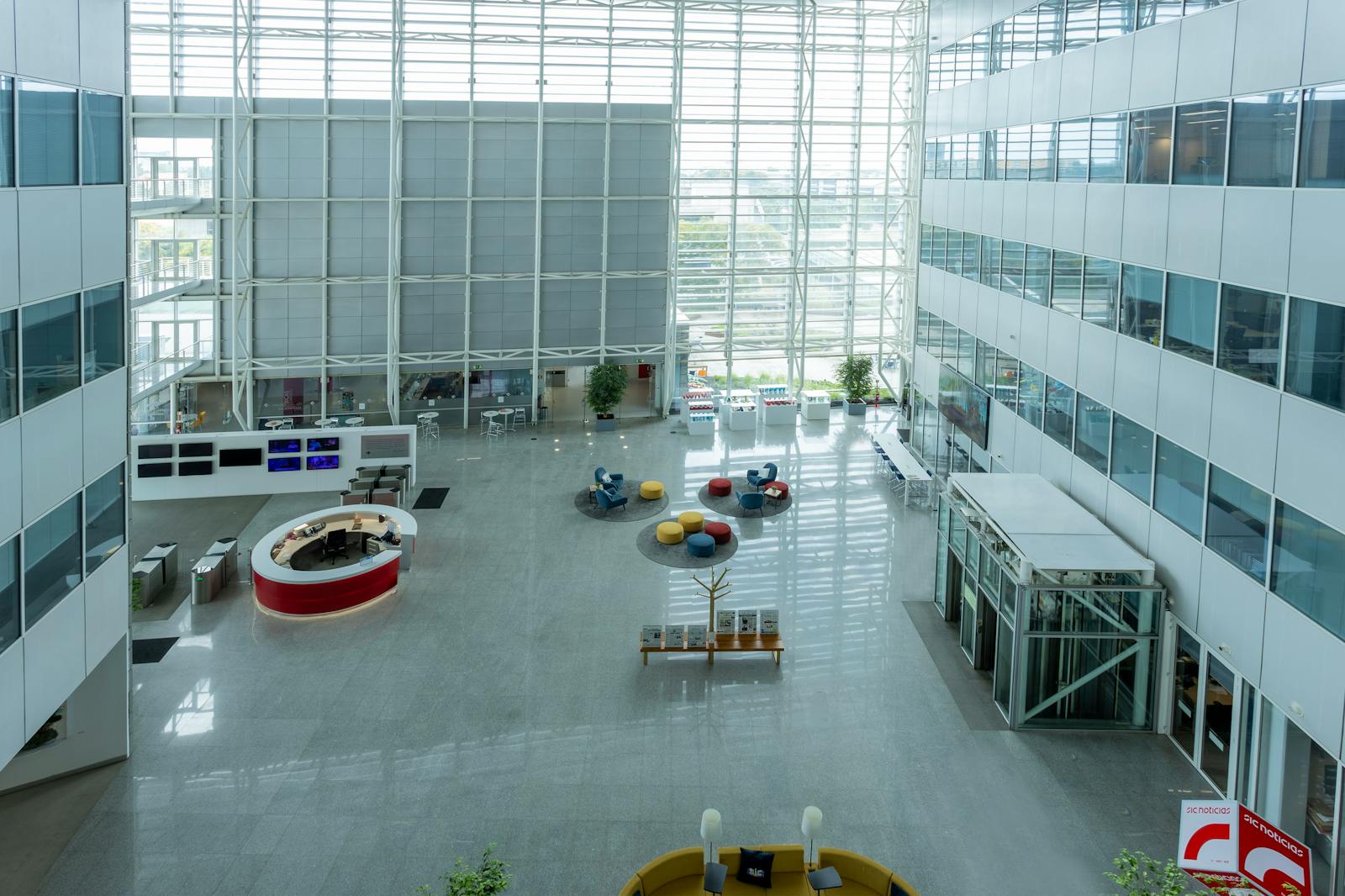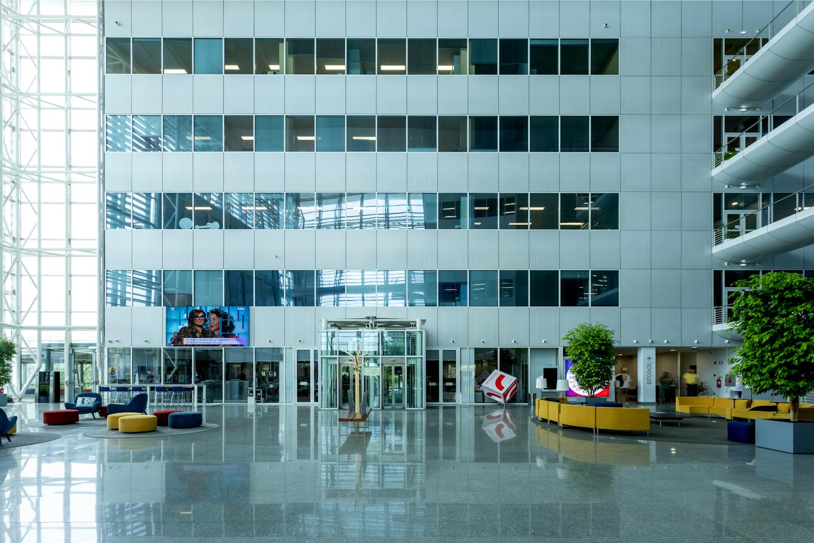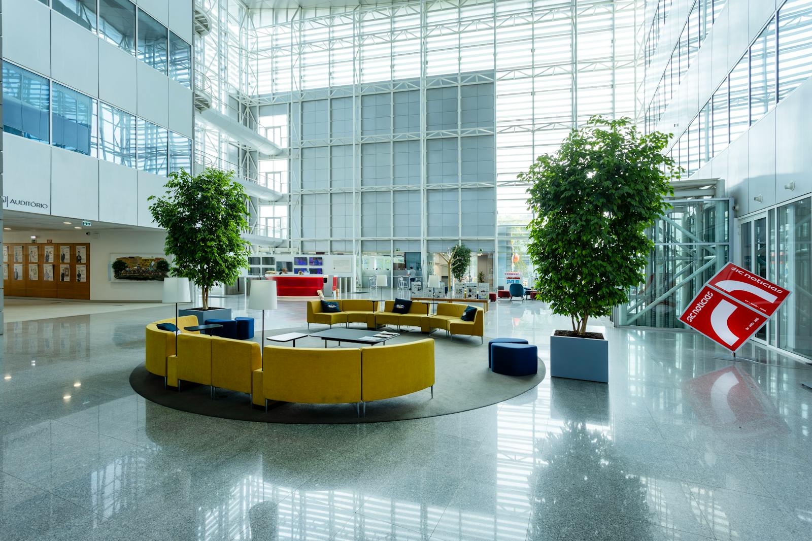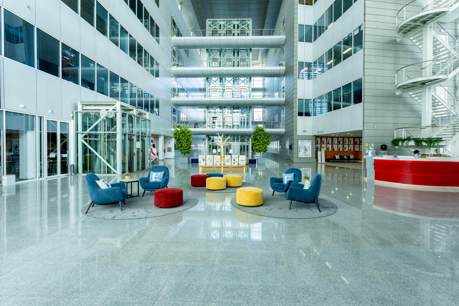 A área circundante é caracterizada por espaços verdes, zonas residenciais e outros edifícios de escritórios, o que contribui para um ambiente profissional e agradável.