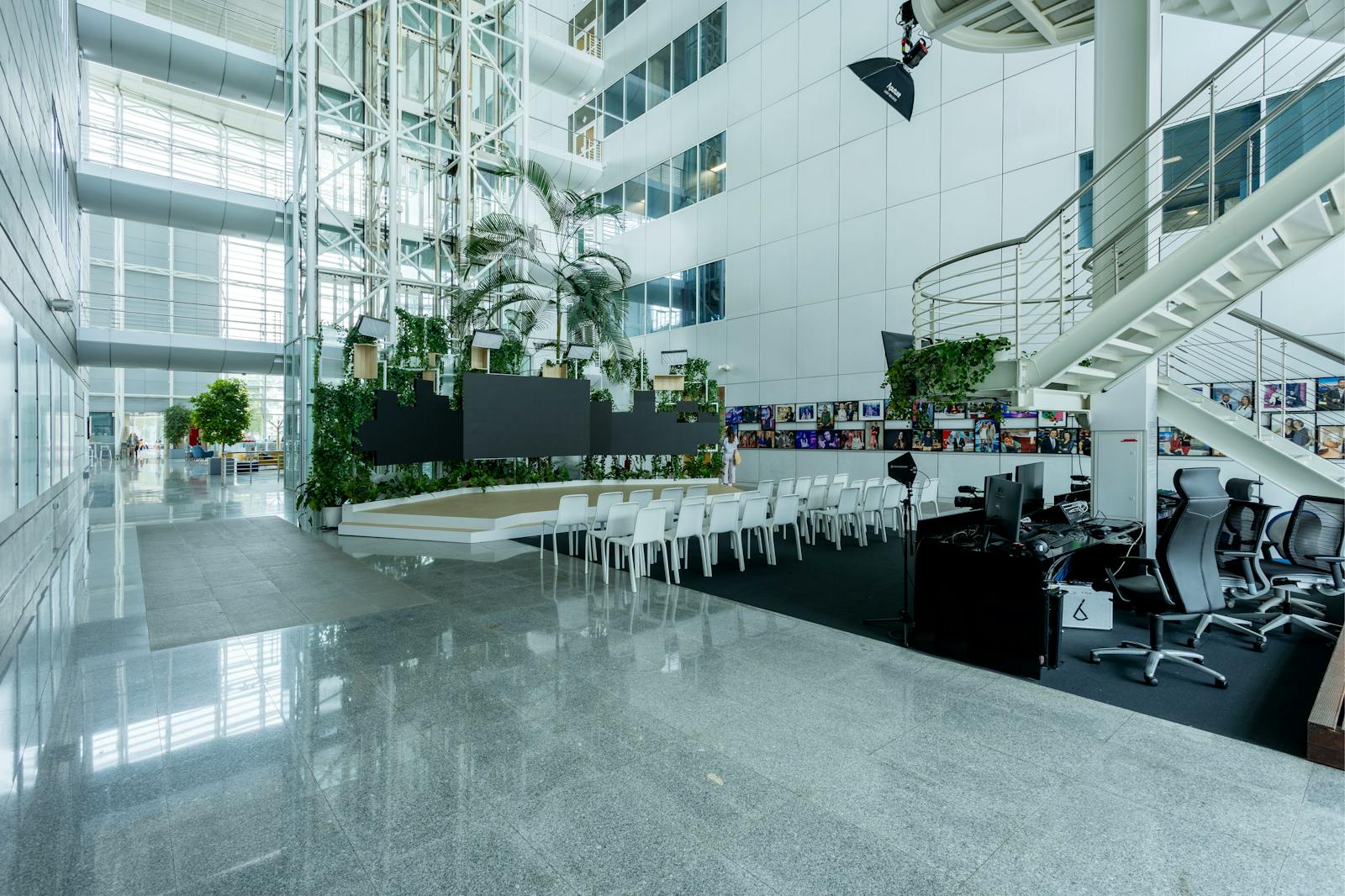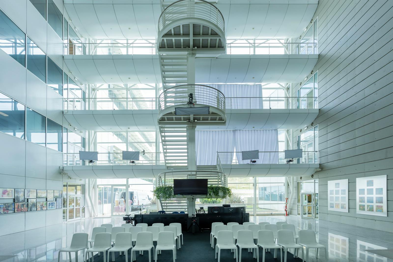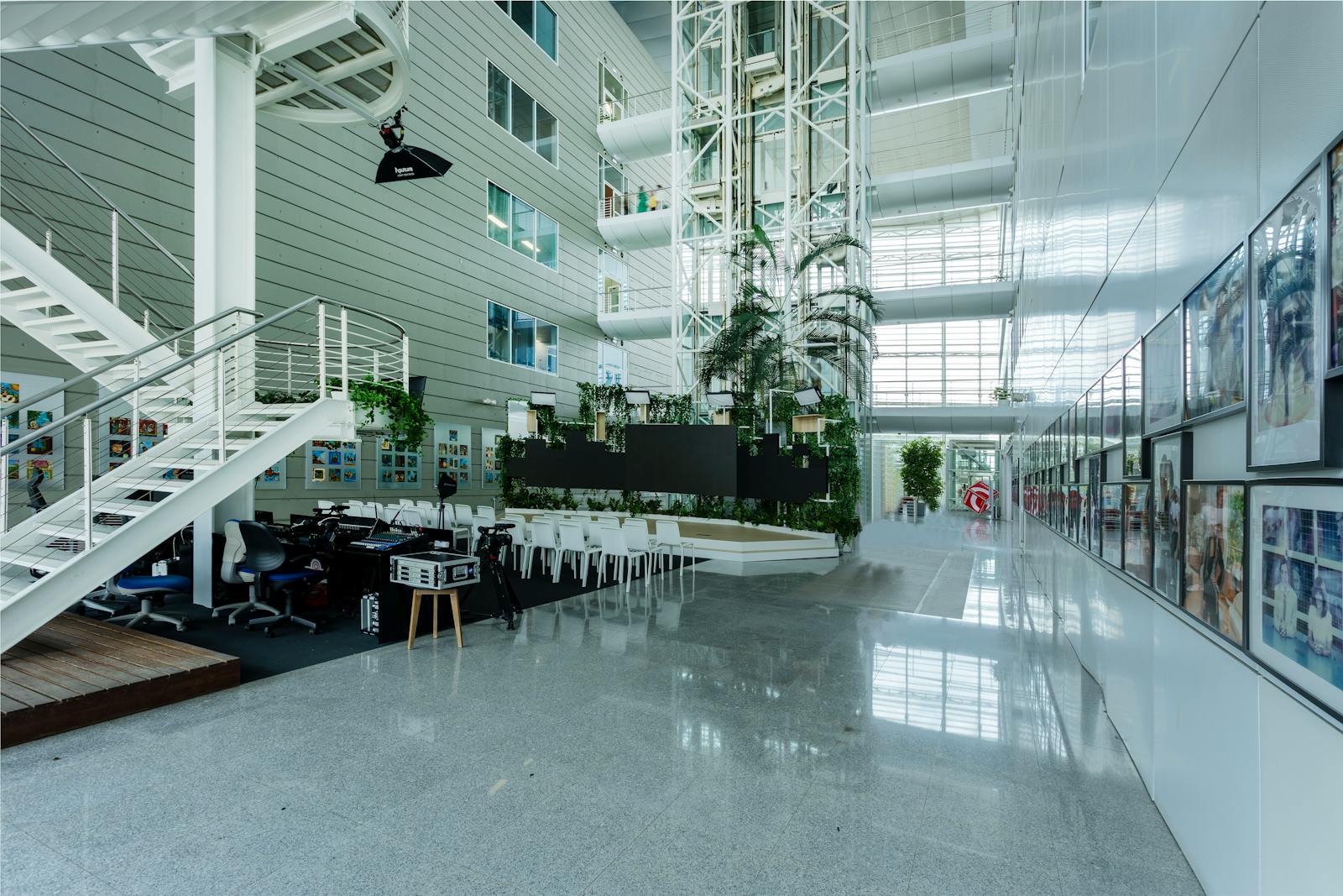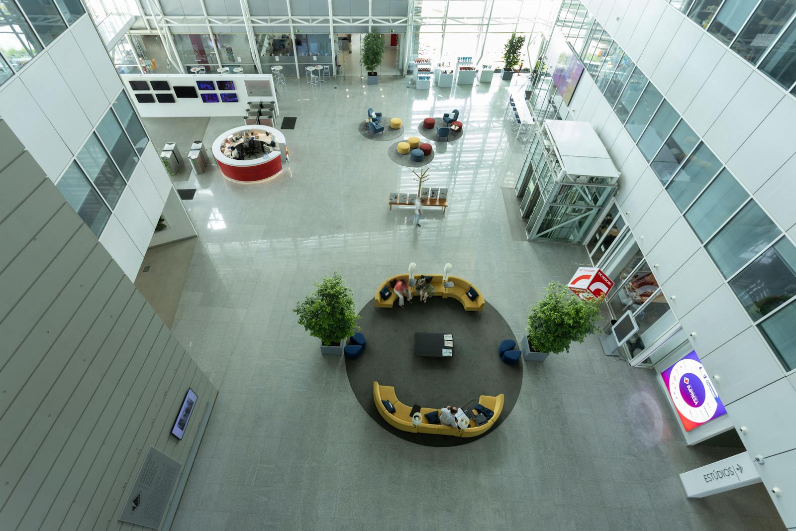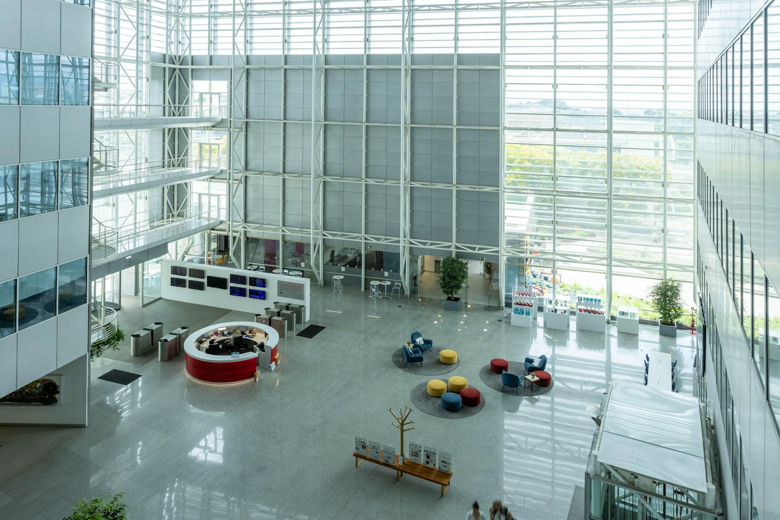 A área circundante é caracterizada por espaços verdes, zonas residenciais e outros edifícios de escritórios, o que contribui para um ambiente profissional e agradável.