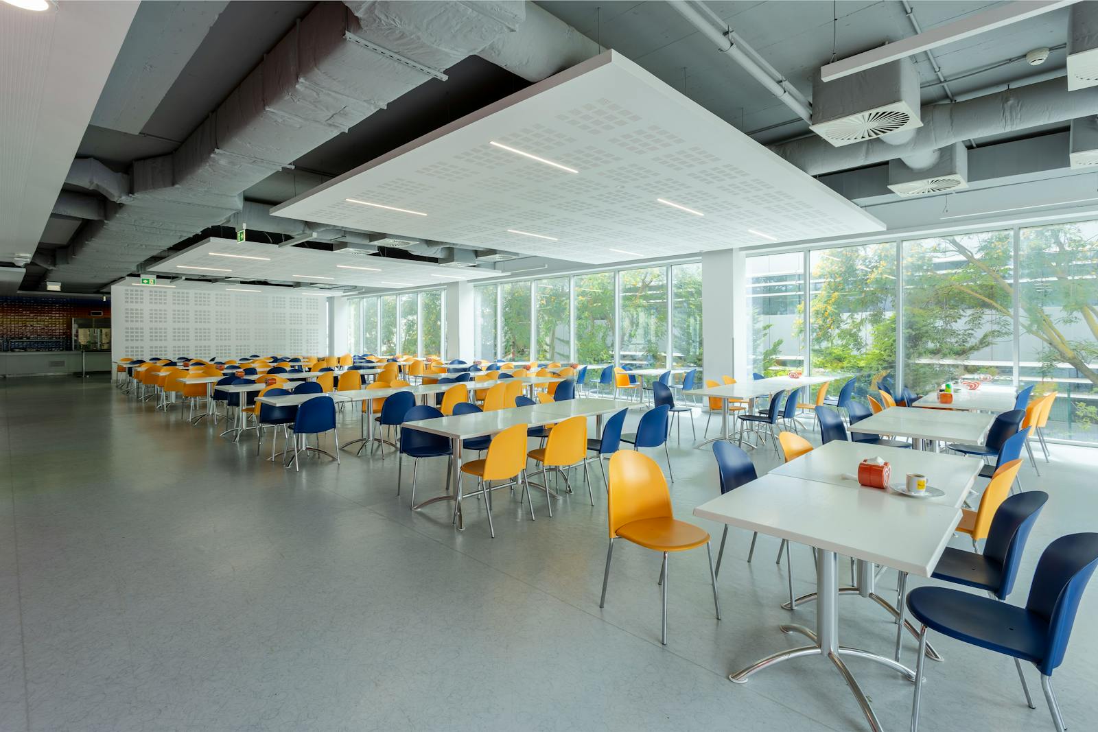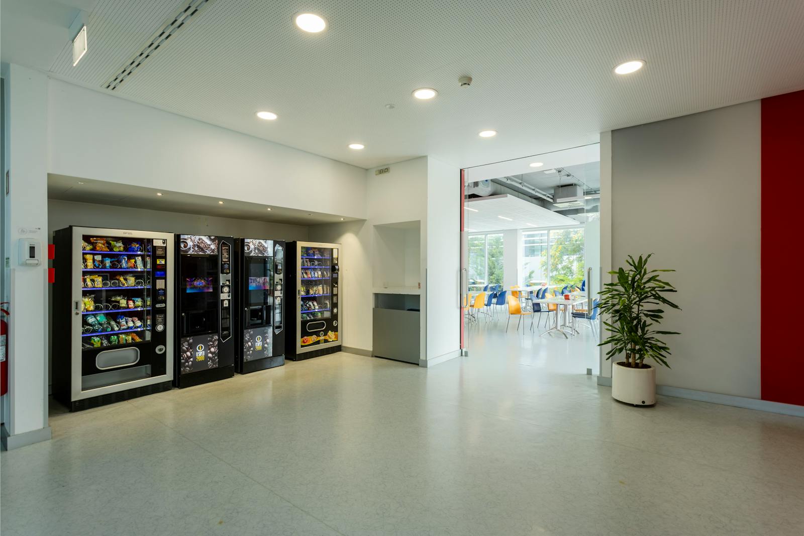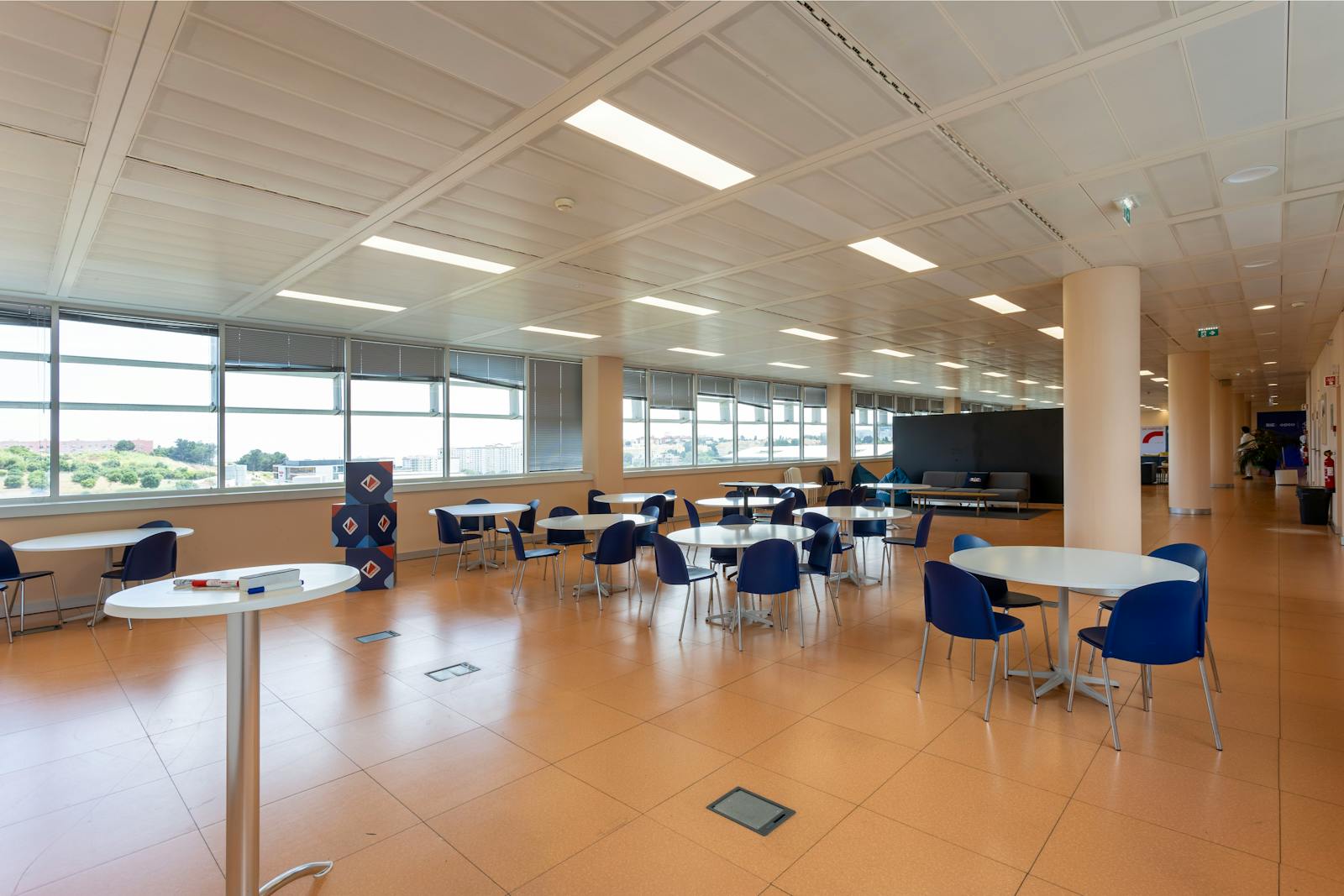 O edifício dispõe de uma cantina comum com refeições a cerca de 8€ por refeição.
