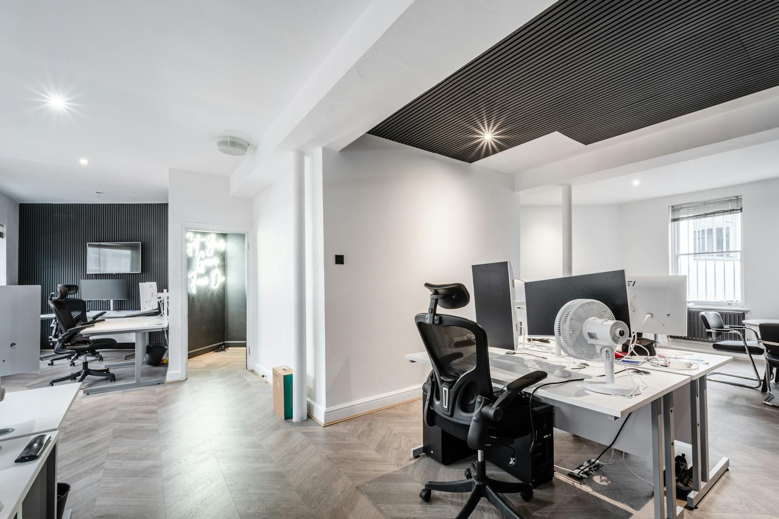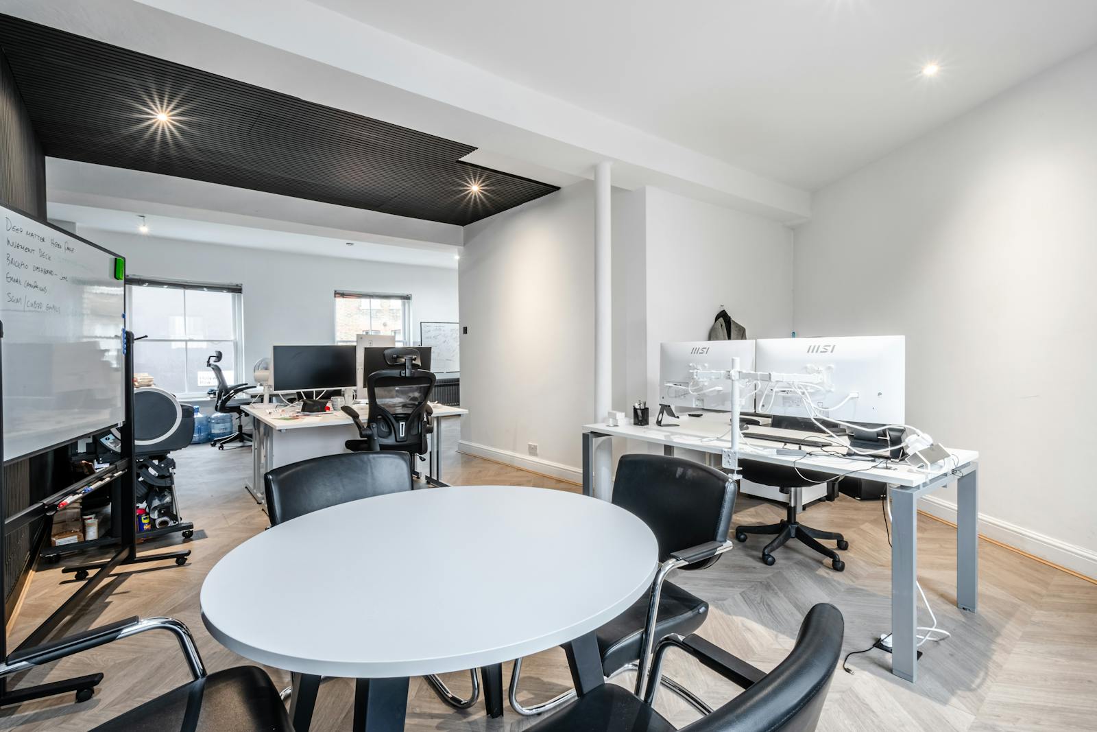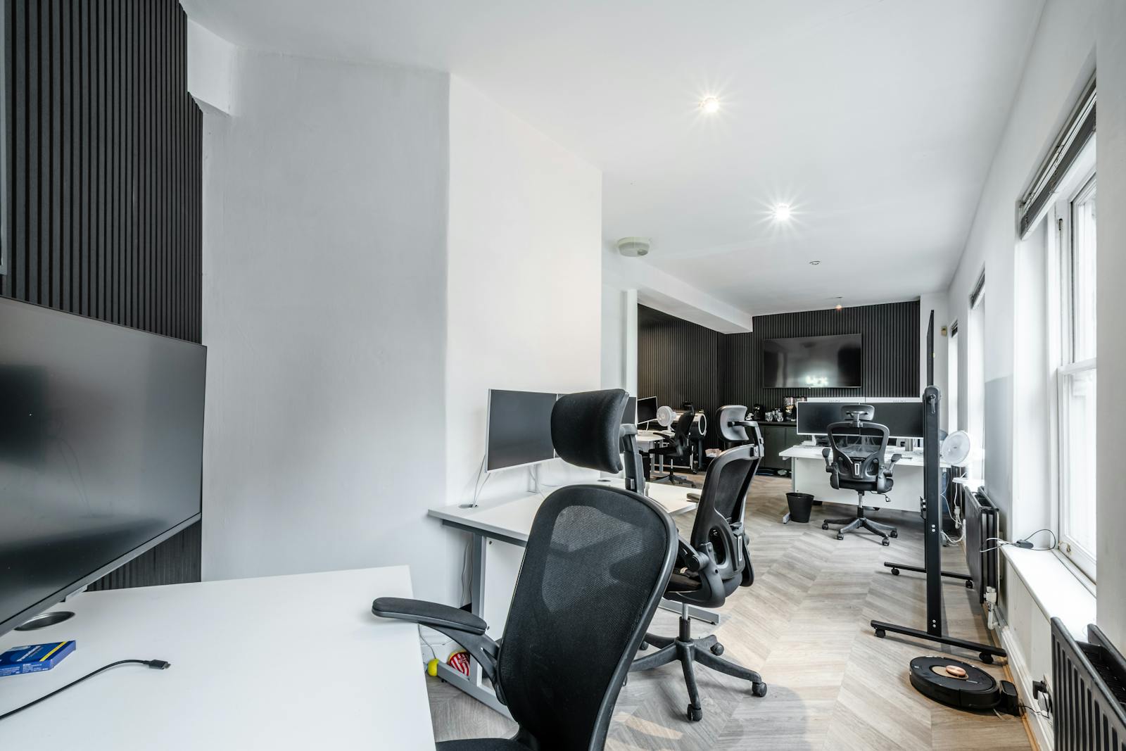 A beautifully refurbished 550 sq. ft. first-floor office in vibrant Shoreditch. Finished to a high standard, this bright, open-plan workspace is ideally situated just off Old Street, offering both style and convenience.