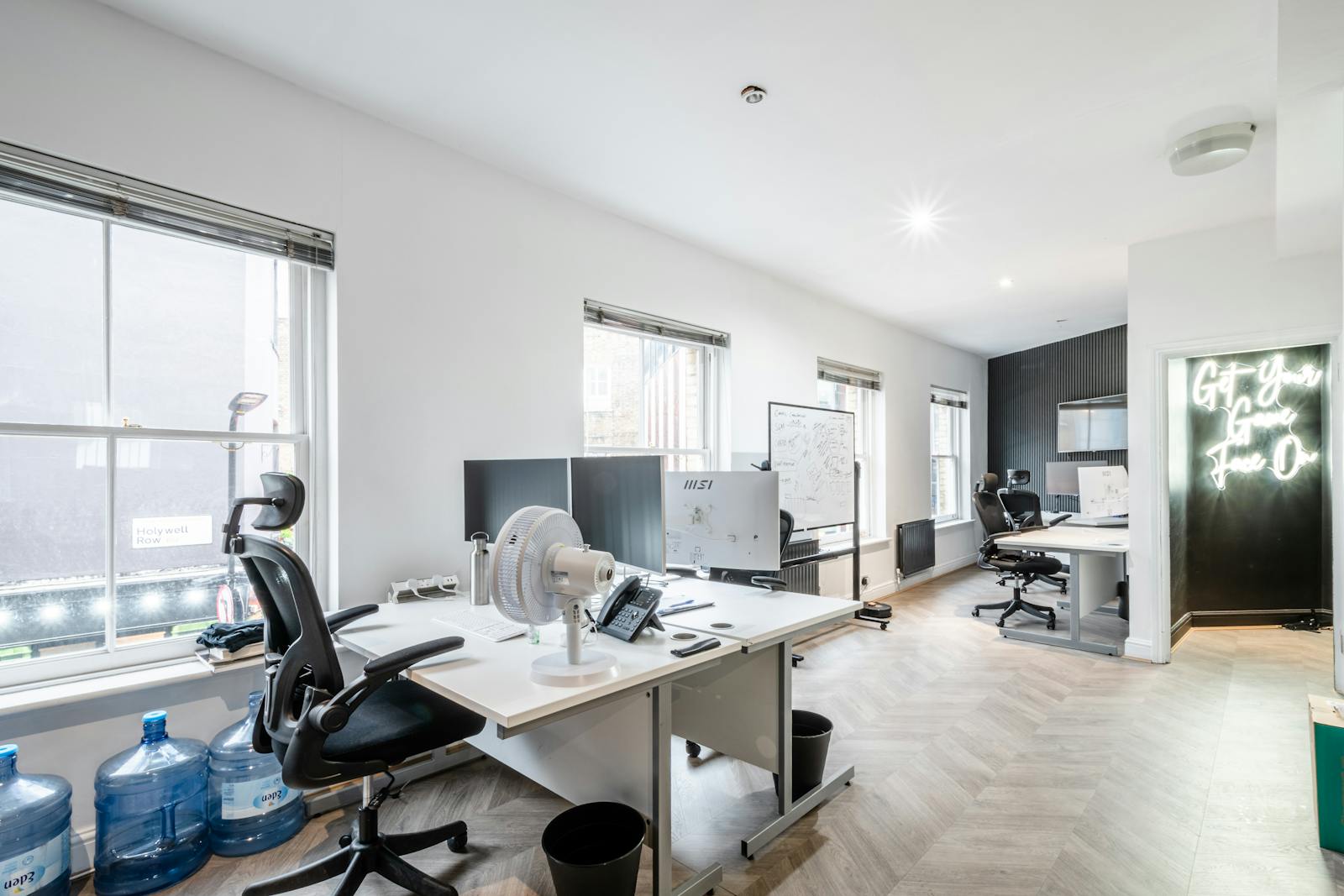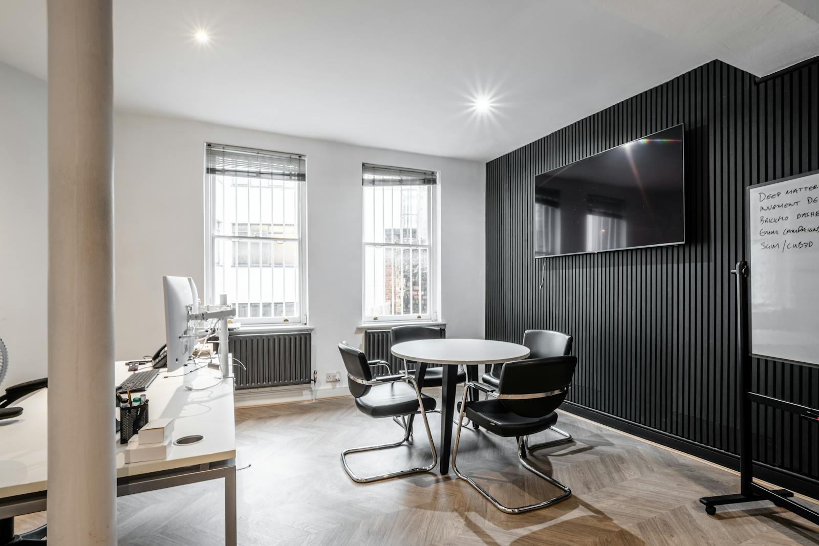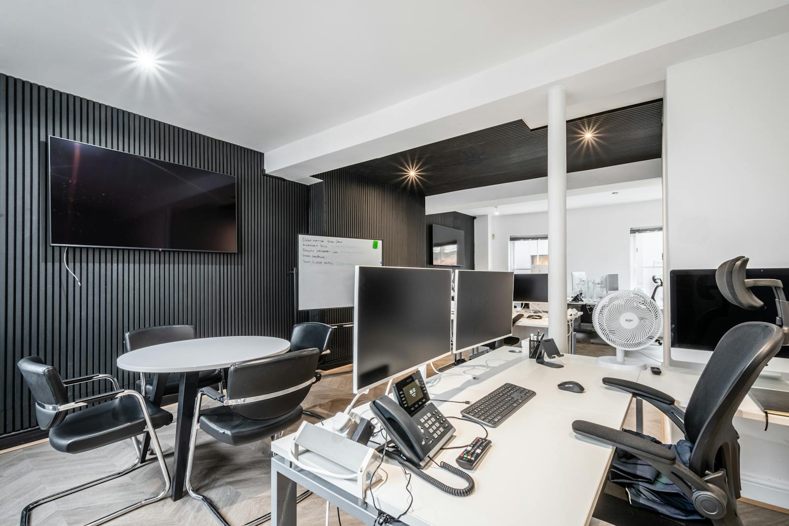 A beautifully refurbished 550 sq. ft. first-floor office in vibrant Shoreditch. Finished to a high standard, this bright, open-plan workspace is ideally situated just off Old Street, offering both style and convenience.