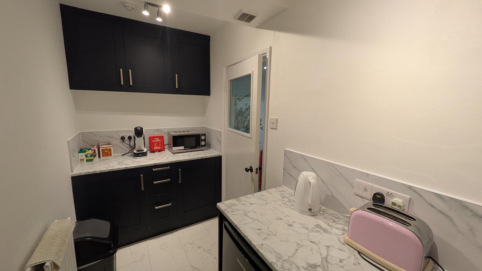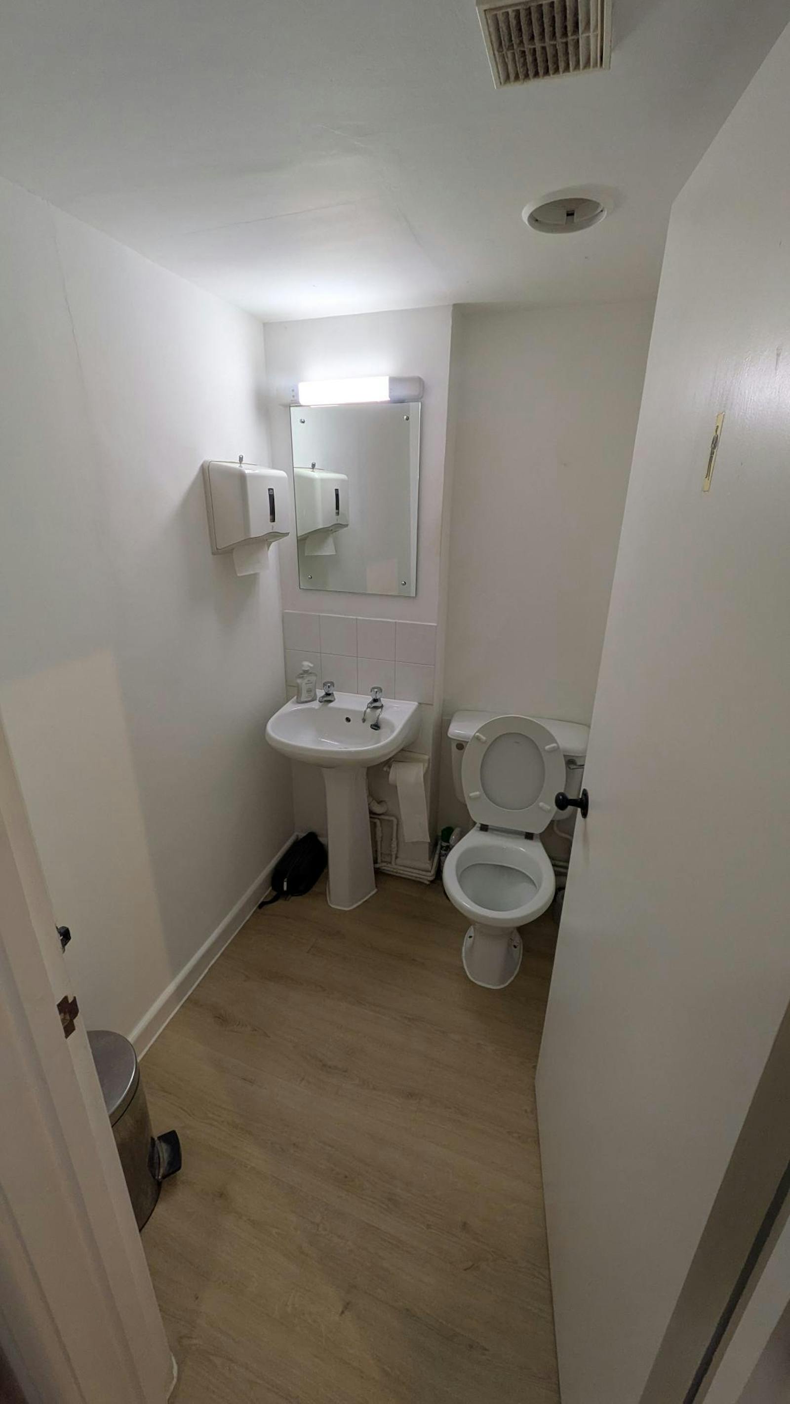 The front office has painted walls, exposed wooden beams and carpeted floor. There is plenty of natural light, gas central heating, halogen spotlights and there are shared kitchen and WC facilities available.