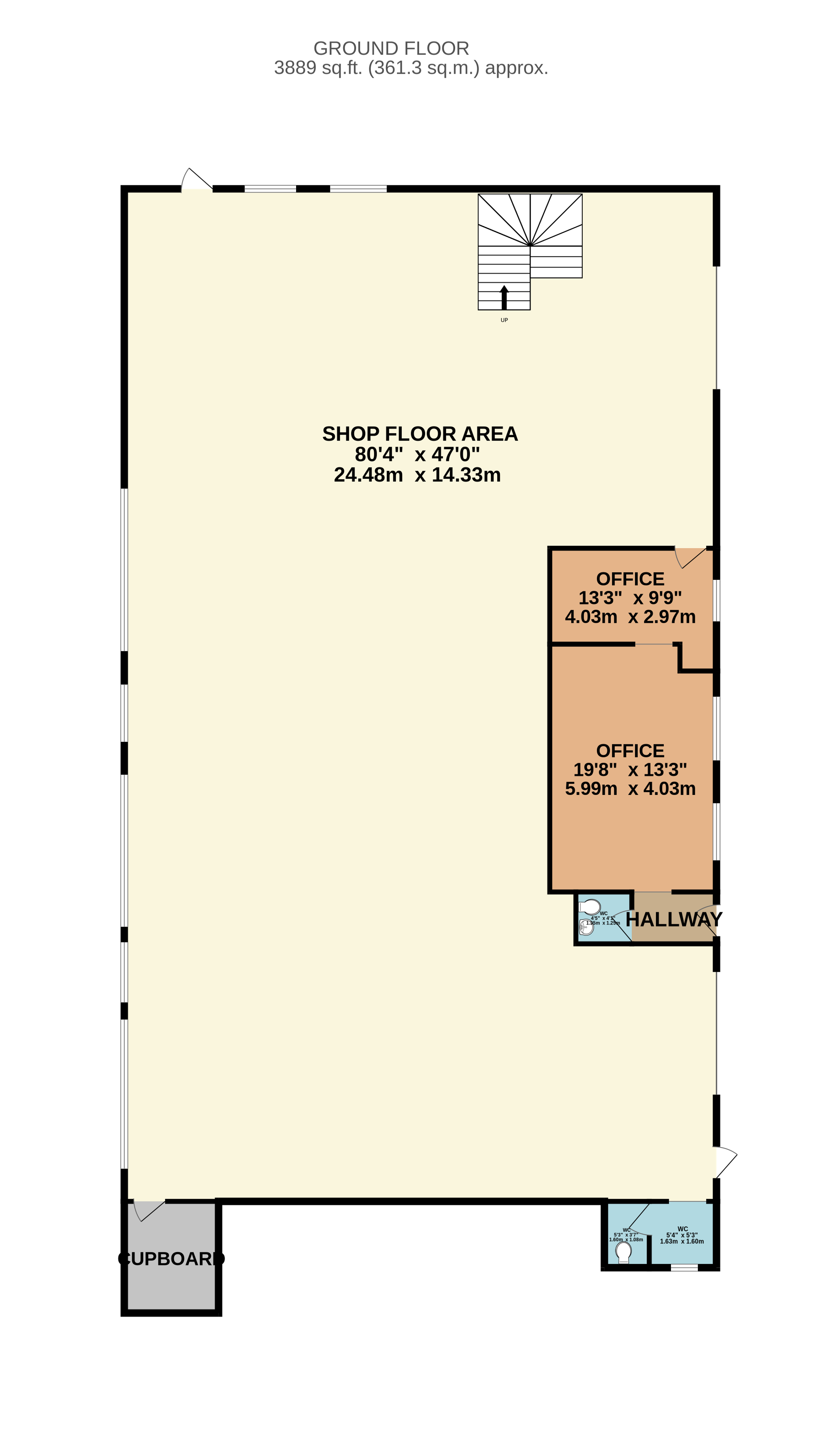 The building has approx. 3,900 sq st of space to the ground floor with two roller shutter doors allowing vehicle access, 2 X W.C.'s, 2 x office rooms, a store room and a large open plan area. There is a further Mezzanine level with approx. 1,500 sq ft of space. Externally there is a large space to the side of the building that offers good outside space and parking for approx. 10 cars. Please see the floor plan for layout details.