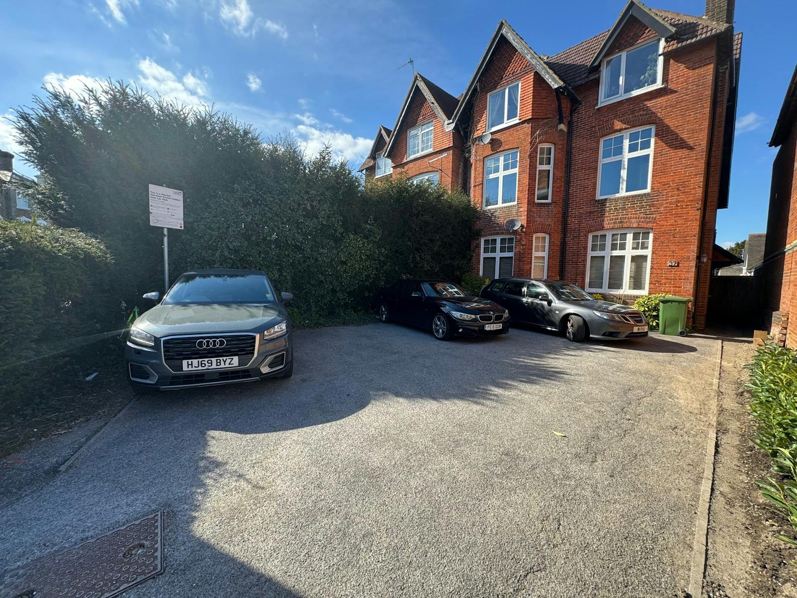 The property comprises a forecourt car park situated directly in front of a three-storey converted period building. The car park is of level concrete surfacing and provides off-street parking for five vehicles in demised parking bays.