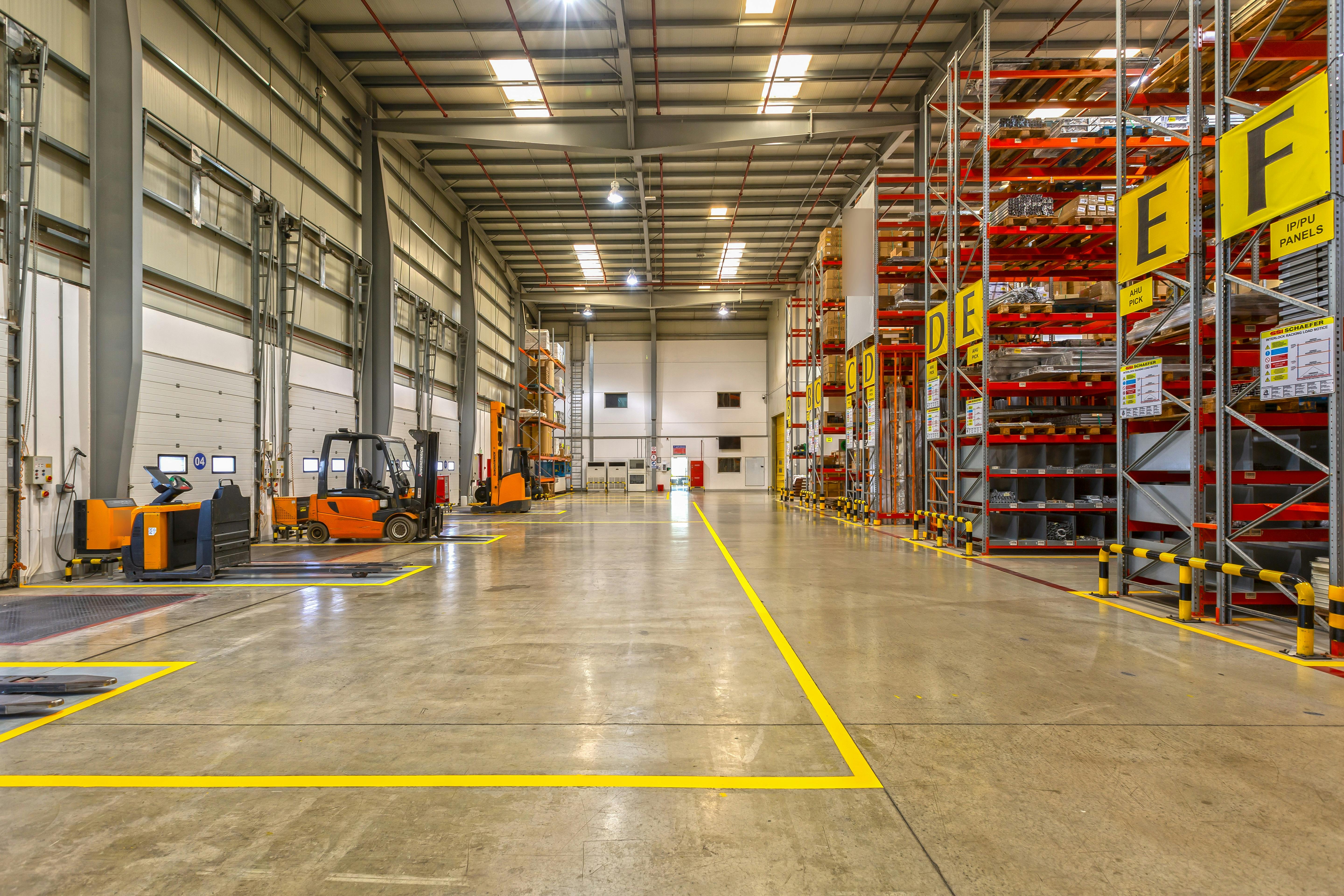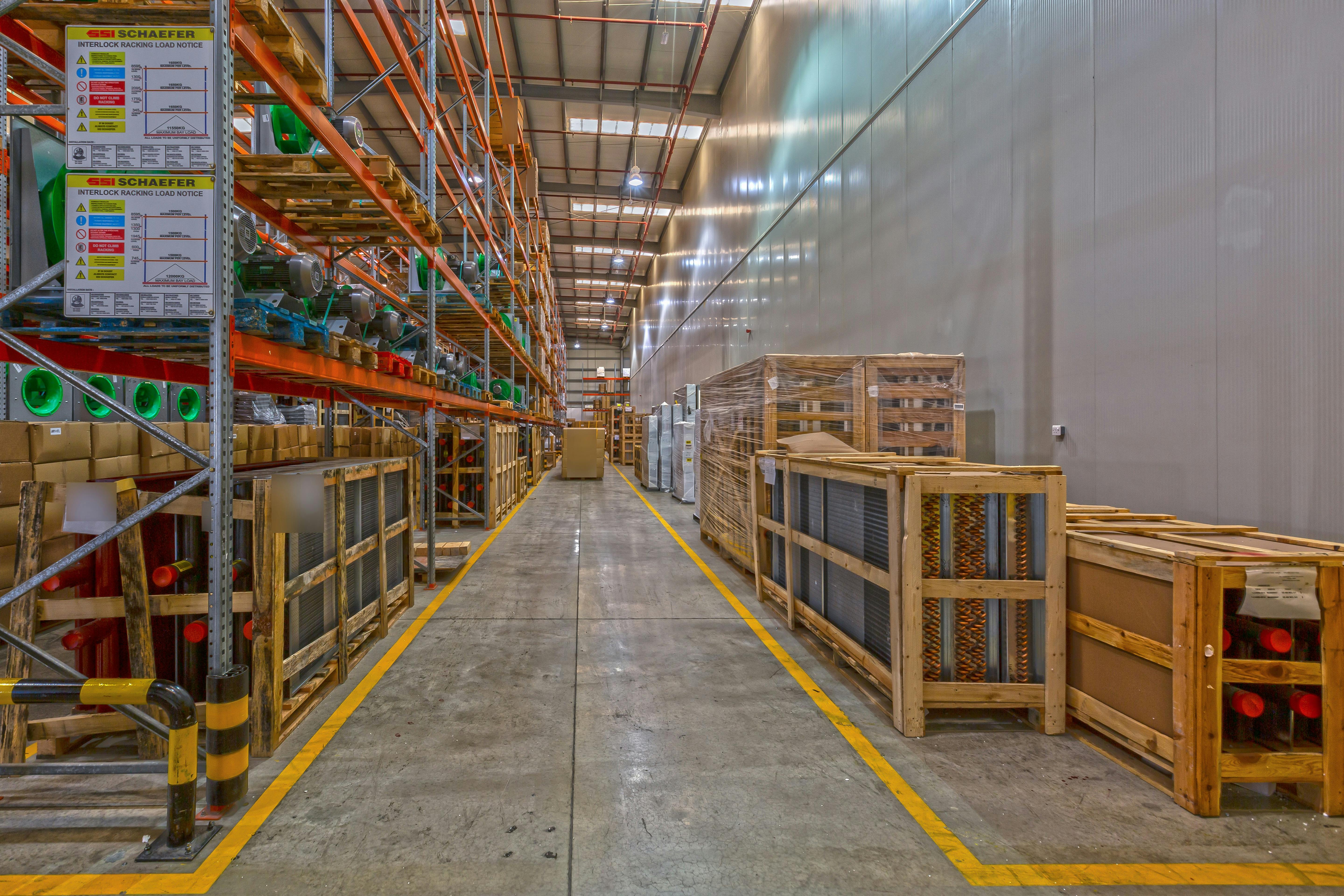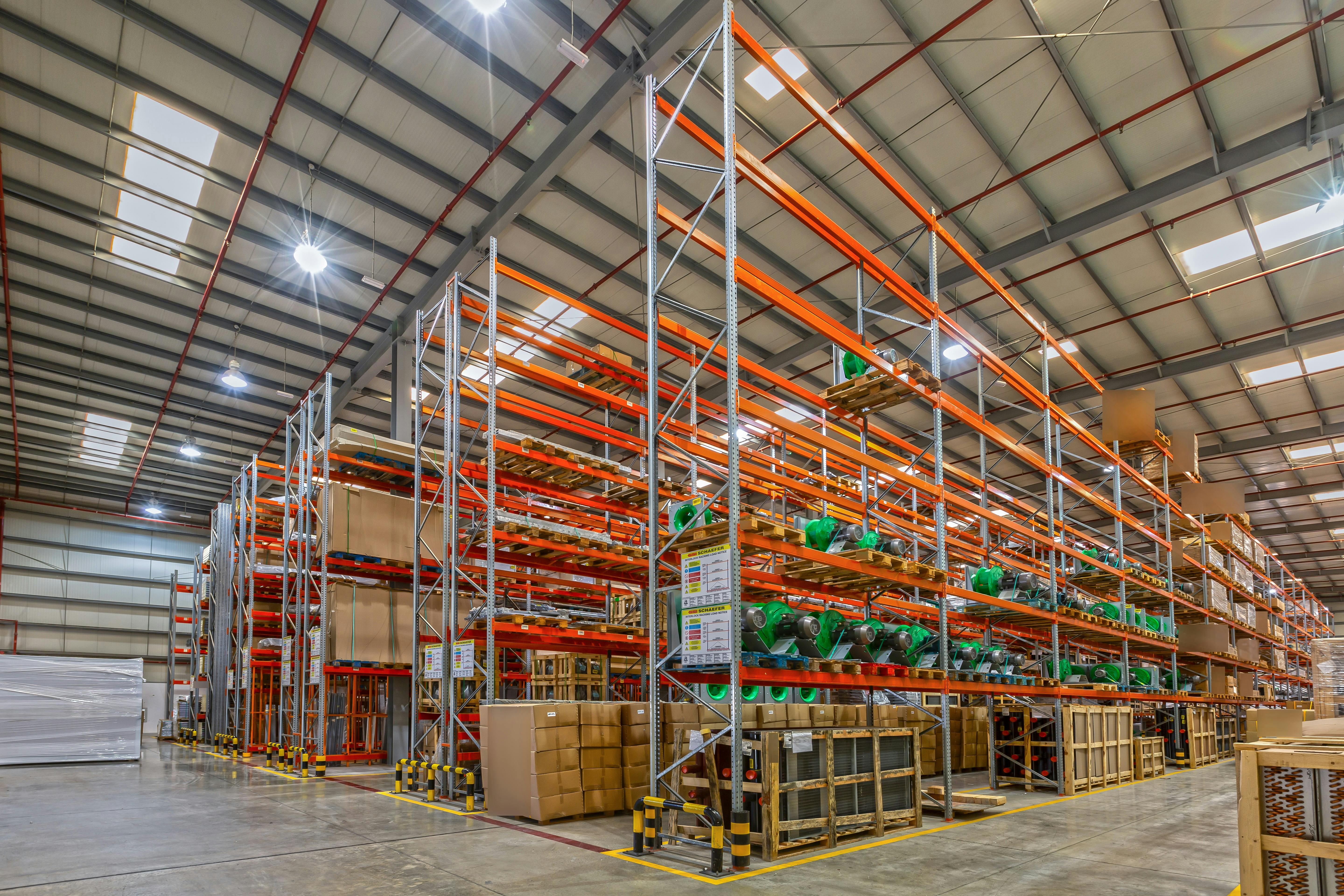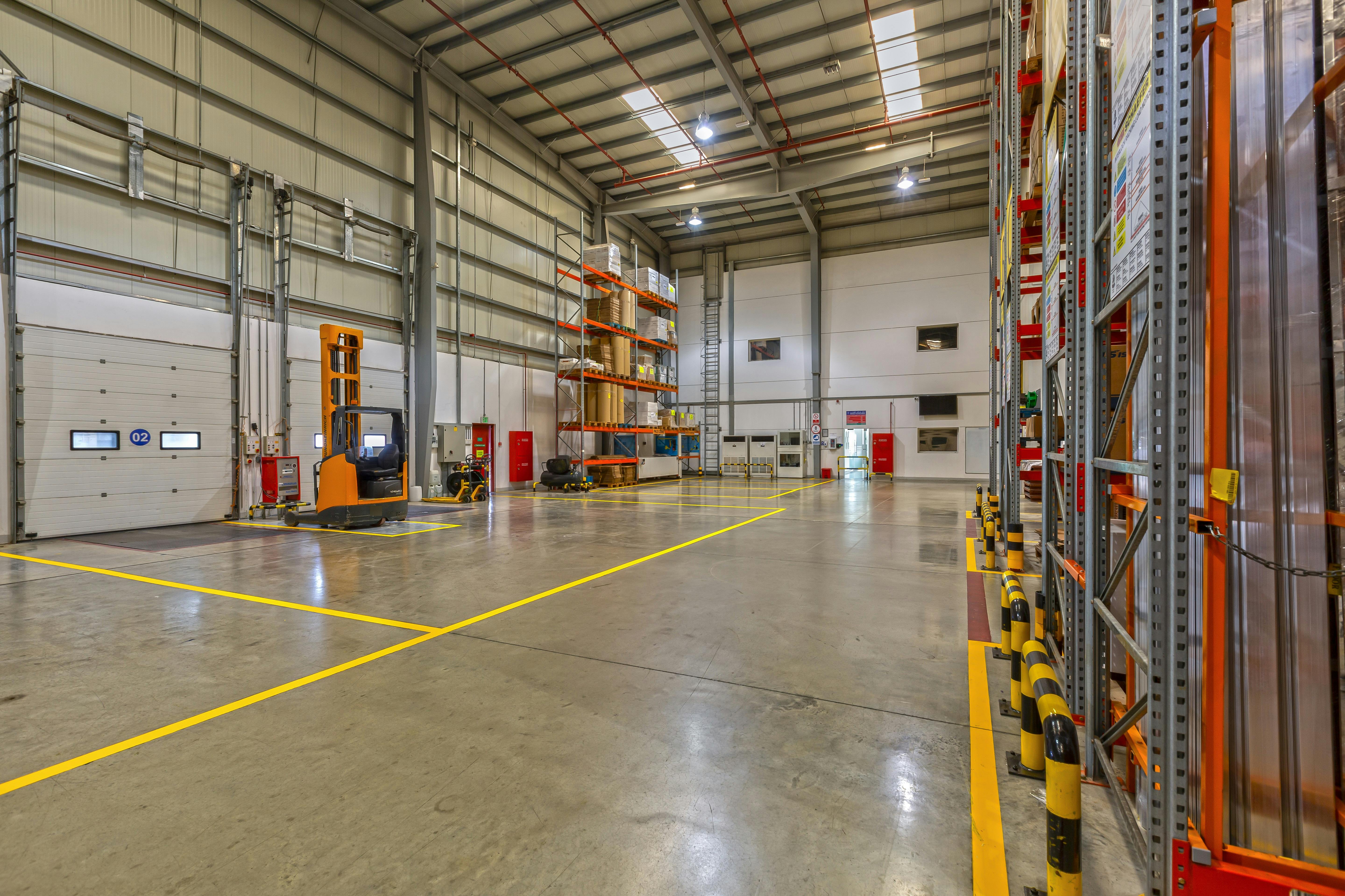 The warehouse, which was constructed in 2015, is of steel portal frame with block-work infill. The property is of steel frame construction and can broadly be split into two sections, one of which is a temperature controlled chamber (maintained between 20-24 degrees) and the second which is a larger fully racked (SSI Schaefer racking) area. The warehouse benefits from a ‘super flat’ concrete floor which has clearly been well maintained and shows no visible signs of cracking or ageing. The walls and ceiling are insulated and the warehouse benefits from a full overhead sprinkler throughout. Lighting is provided through translucent skylights and artificially via high bay lighting.