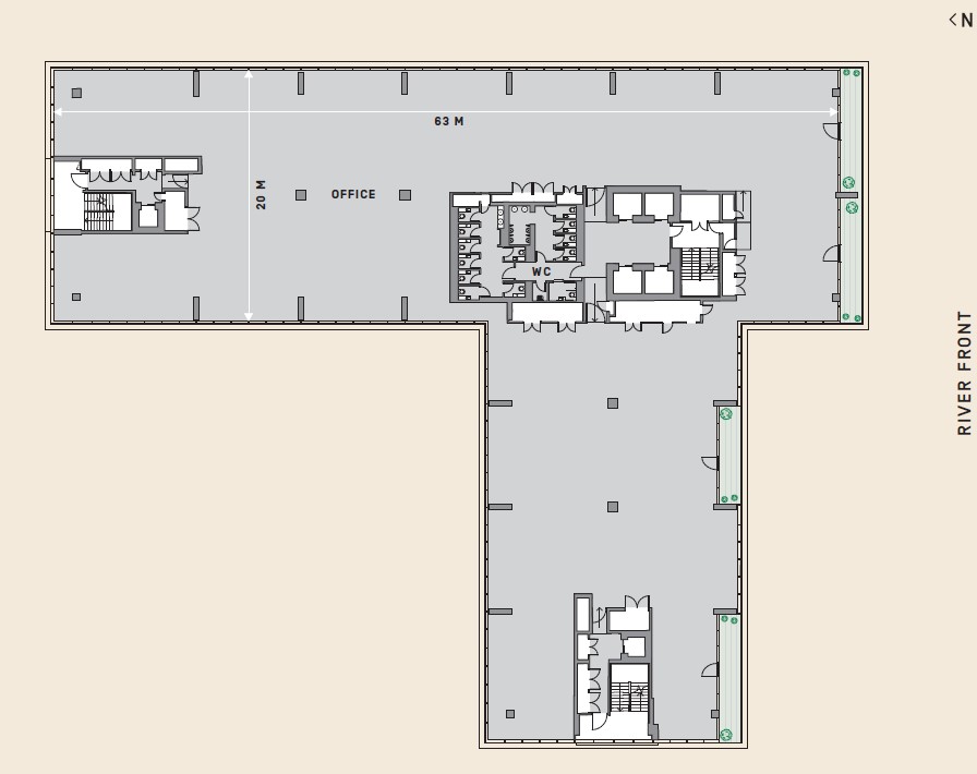The floors provide dedicated state-of-the-art office space. Look out 360° with unlimited natural light from all sides. A carefully maximised design with a Cat A fit-out with an enviable view.