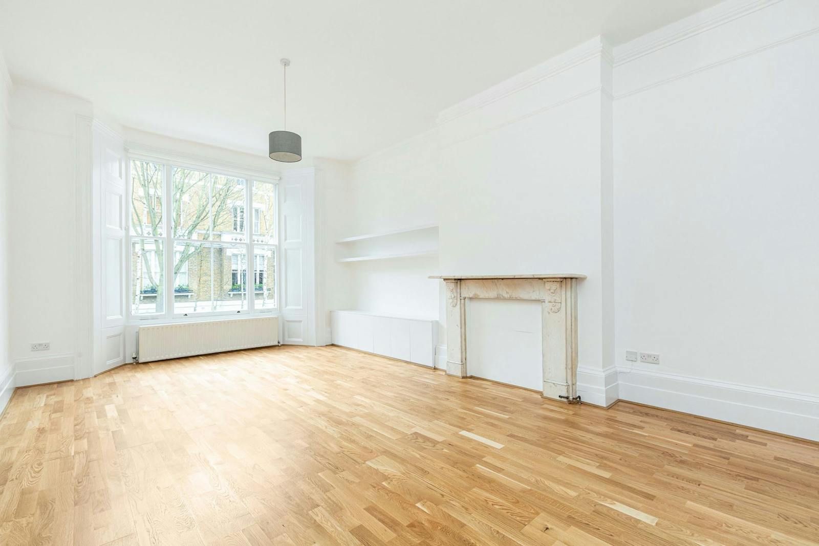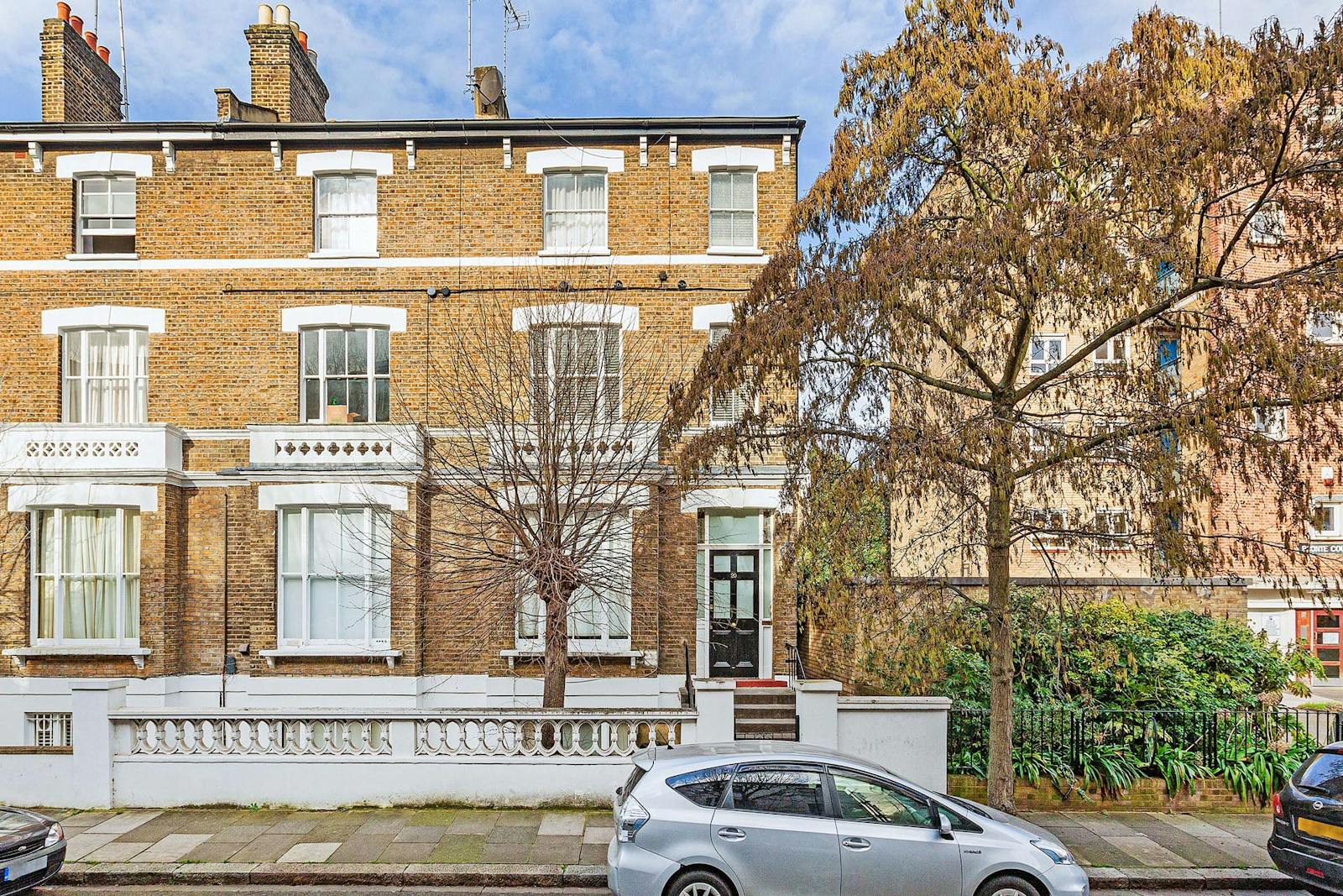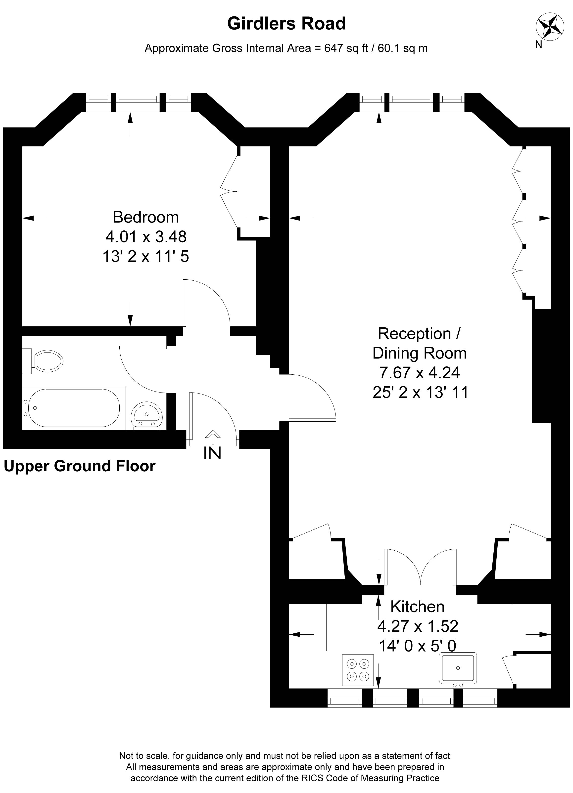Measuring 647 sq. ft (60.1 sq. m), the flat offers a notably generous layout for a one‑bedroom home and is situated on the raised ground floor of an attractive period building.