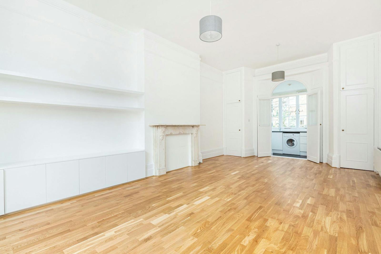 Thoughtfully designed built‑in wardrobes provide ample storage, while integrated appliances - including a washer/dryer and fridge freezer - offer added convenience.