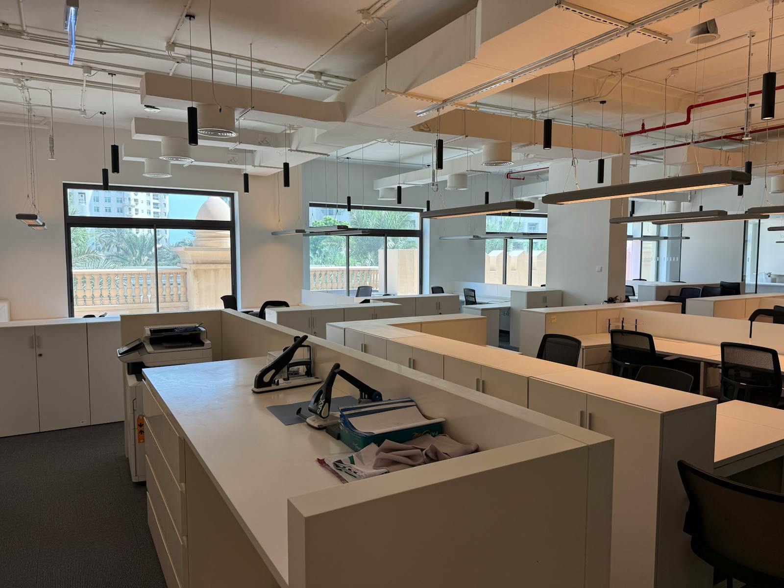 Jones Lang LaSalle Real Estate Brokerage welcomes you to this exceptional fully serviced office opportunity in the prestigious Golden Mile on Palm Jumeirah. This turnkey workspace offers 9,175 sq ft of premium office space with a complimentary private terrace, configured to accommodate approximately 90 workstations.