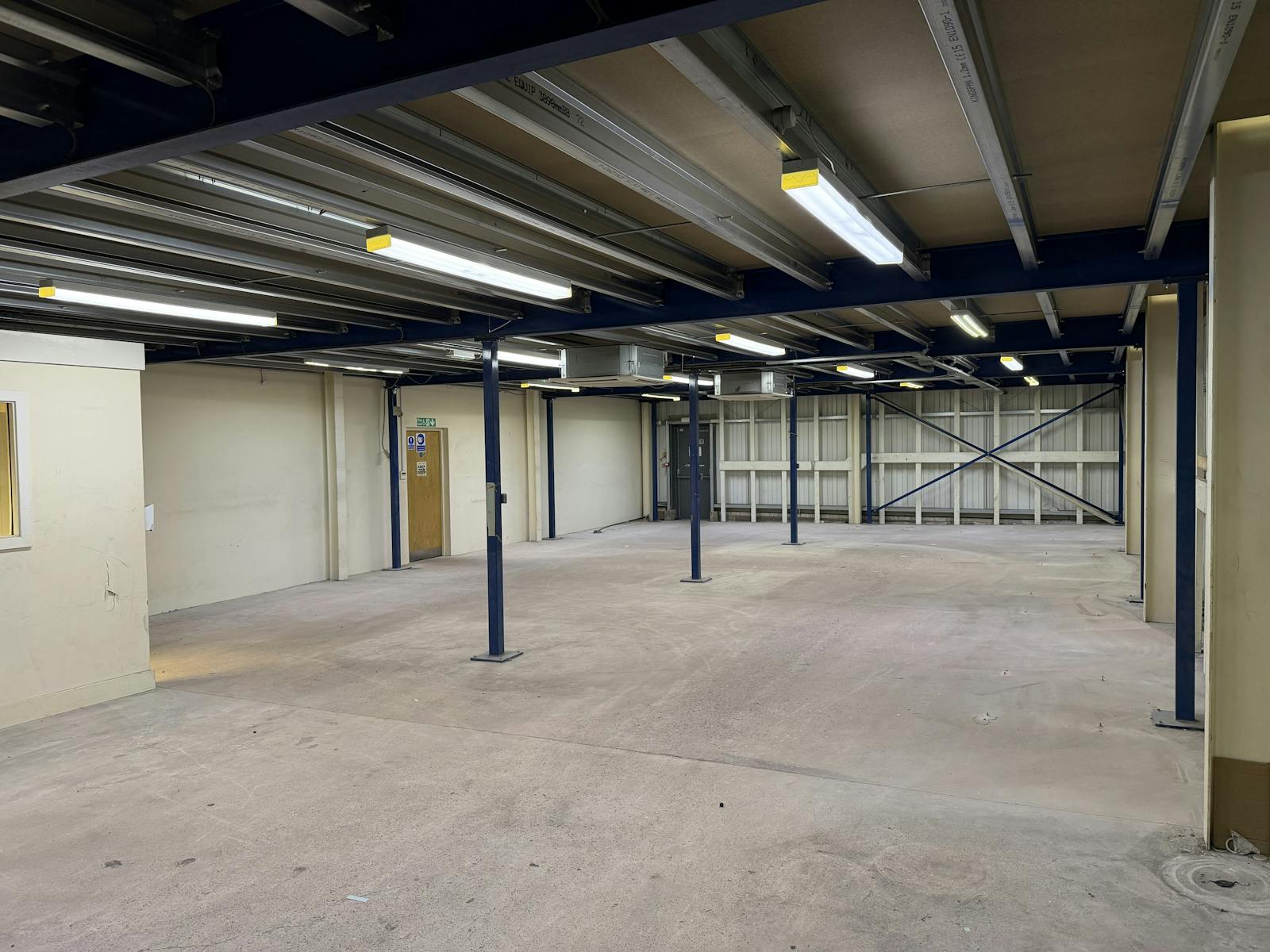 A first floor mezzanine provides additional storage space, with potential to be converted into further office accommodation if required.