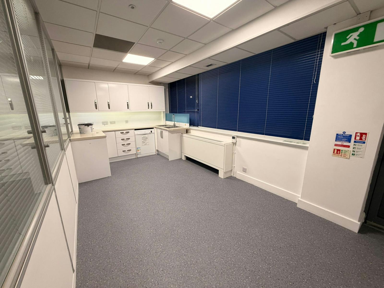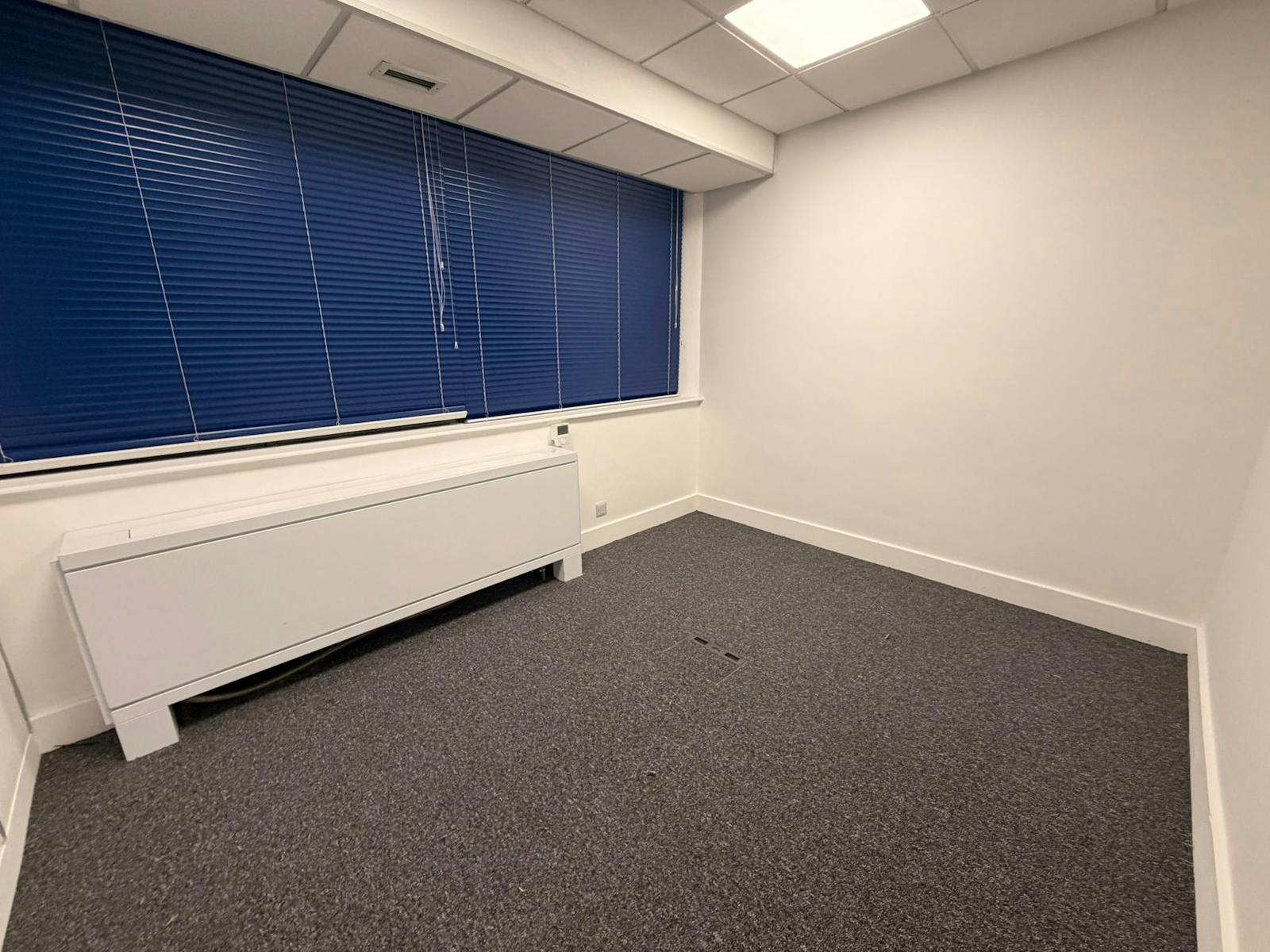 This office space is on the ground floor of a prestigious building, featuring air conditioning (not tested), a suspended ceiling with lights, double glazing, and a kitchenette. Each floor has WC facilities, access to two passenger lifts, and allocated parking. All of the office suites are fully refurbished to a high level.