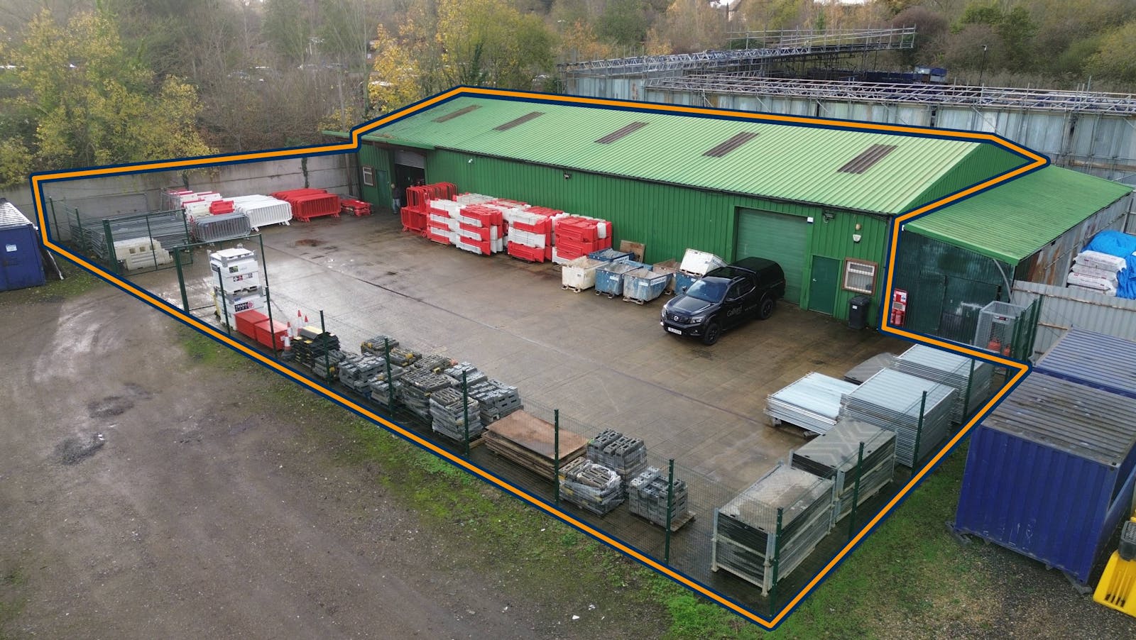 The premises comprise a steel framed warehouse of 4,925 ft² with 6,350 ft² of fenced concreted yard. The building is set within a secure fenced site. It has an eaves height of approximately 4.0 m, 2 loading doors, fluorescent lighting and toilet facilities.