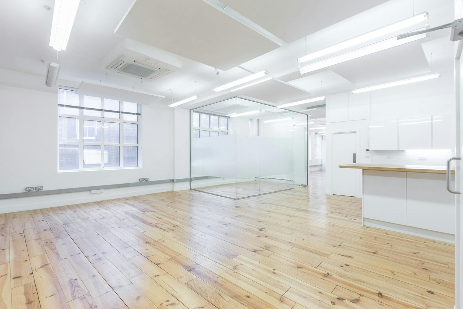 The available unit are occupies the rear part of the first floor of Lion House, which has a common entrance stair from Plough Yard. The offices benefit from real wood floorboards, a glazed meeting room, private W.C. and shower. The space benefits from modern lighting, with comfort cooling / heating to add to the existing great ceiling height and natural light. The tea-point includes a fridge and dishwasher.