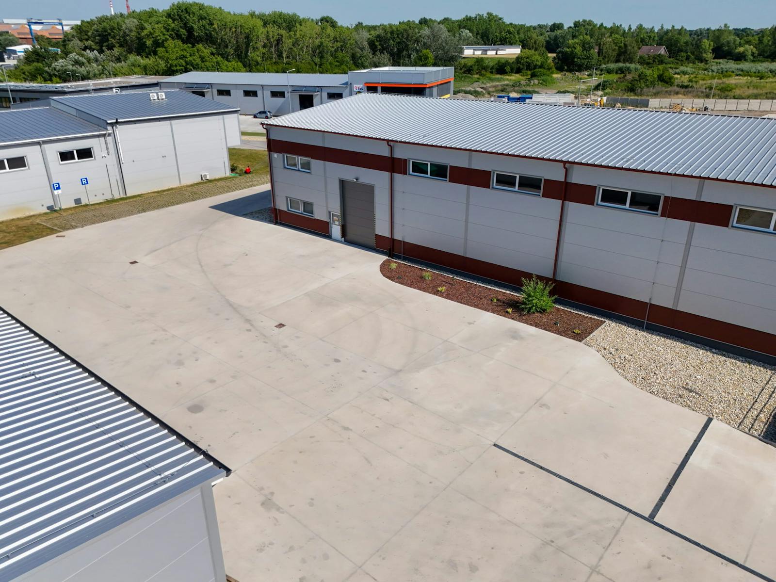 The logistics park is located in Komárno, within an industrial-commercial zone near the city center and the OC Korzo shopping center. Its position provides excellent connectivity to the M1 motorway, just 10 km away, and convenient access to Bratislava (100 km), Budapest (160 km), Vienna (220 km), and Brno (220 km). This strategic location, close to borders and main transport routes, makes the park highly attractive for logistics, distribution, and light manufacturing.