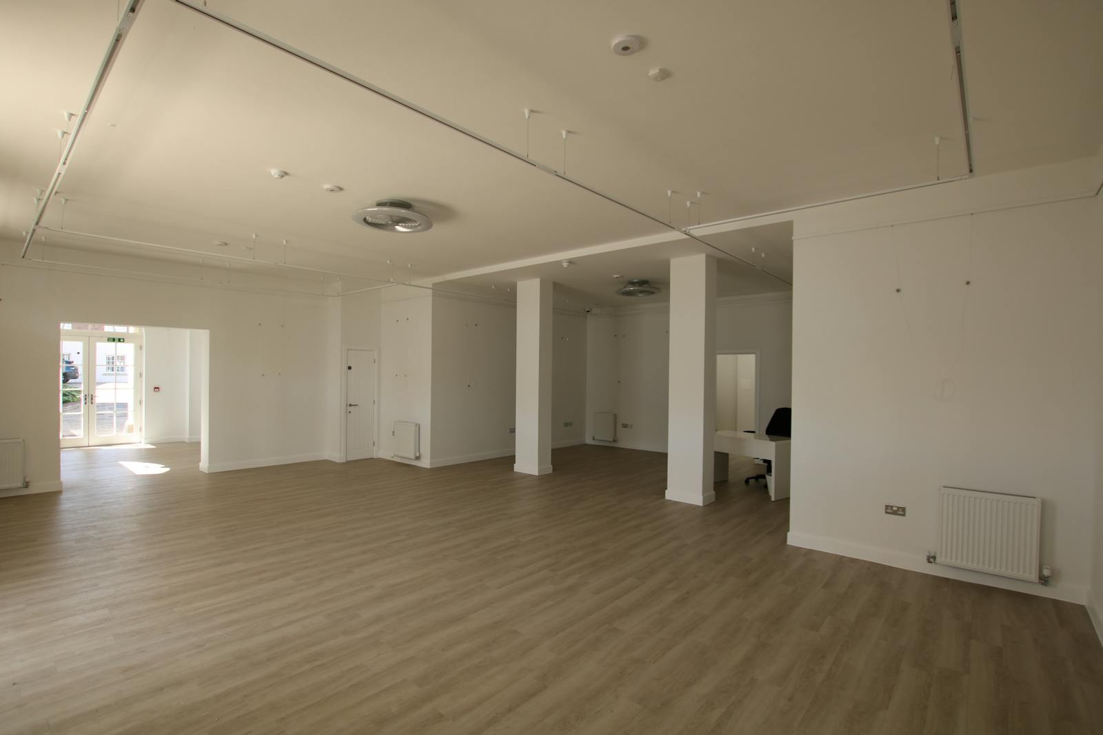 The standard internal specification includes gas fired central heating, plastered and decorated wall finishes, two kitchenettes and two separate WCs. Additional features include power & data outlets, fire alarm system (untested), CCTV (untested), and suspended track lighting.