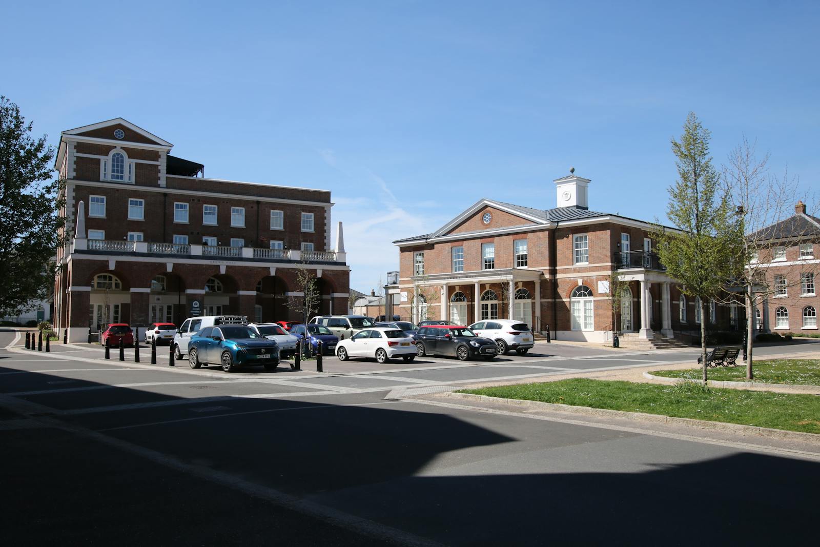 Crown Square acts as the focal point of this quadrant of Poundbury and includes large scale and architecturally eye-catching buildings with a mixture of commercial and residential uses.