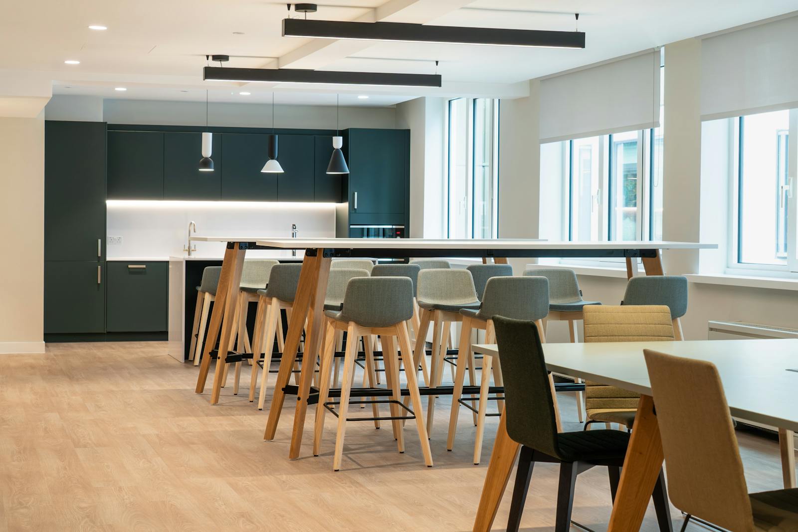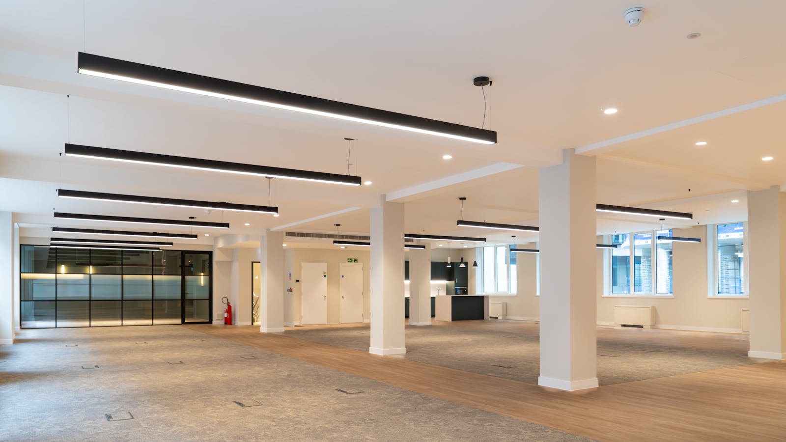 The floors benefit from excellent natural light, and the available offices have been refurbished to enhance the base build and services, including new plaster ceilings, strip and hung LED lighting, new windows with fitted blinds, and new floor finishes. The common parts include newly fitted WCs throughout and two new passenger lifts together with enhanced end-of-journey facilities.