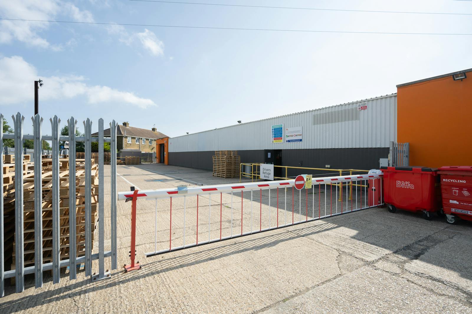 Externally the self-contained 1.74 acres site is fully fenced with in/out accesses, containing boom gates, secure swing palisade gates, car parking, and service yard.