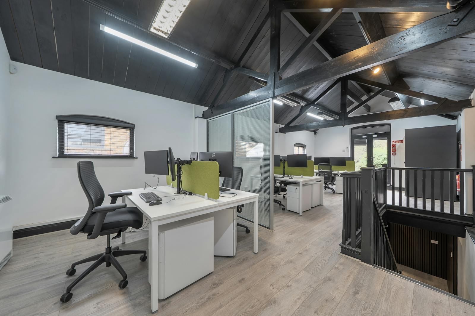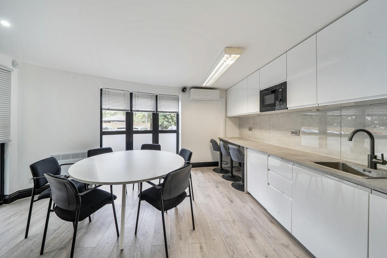 Nickron House is a modern and well-presented office building, ideally situated just a stone’s throw from Rickmansworth High Street. The property is arranged over two storeys. The ground floor comprises two smaller offices, a larger office, WC facilities, and a kitchenette. The first floor features an open-plan office space, a further large office, and a dedicated meeting room. The building comes with 8 allocated parking spaces.