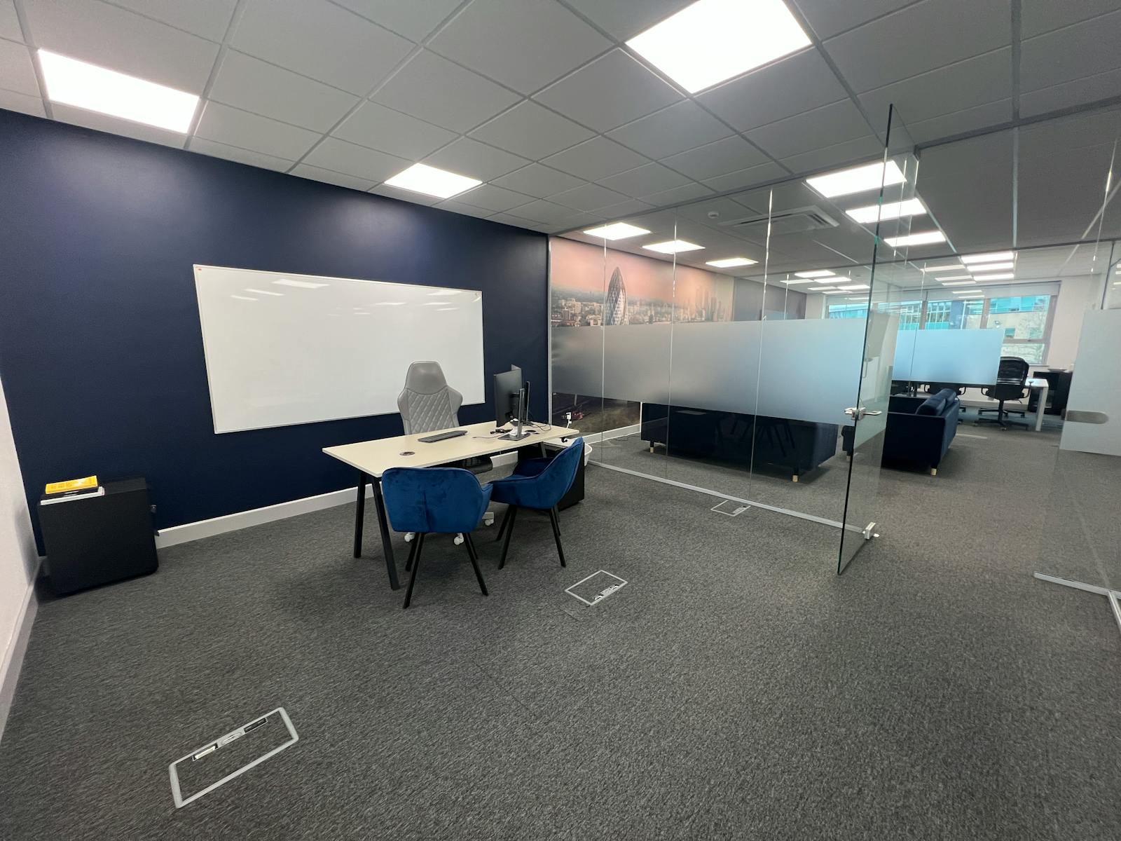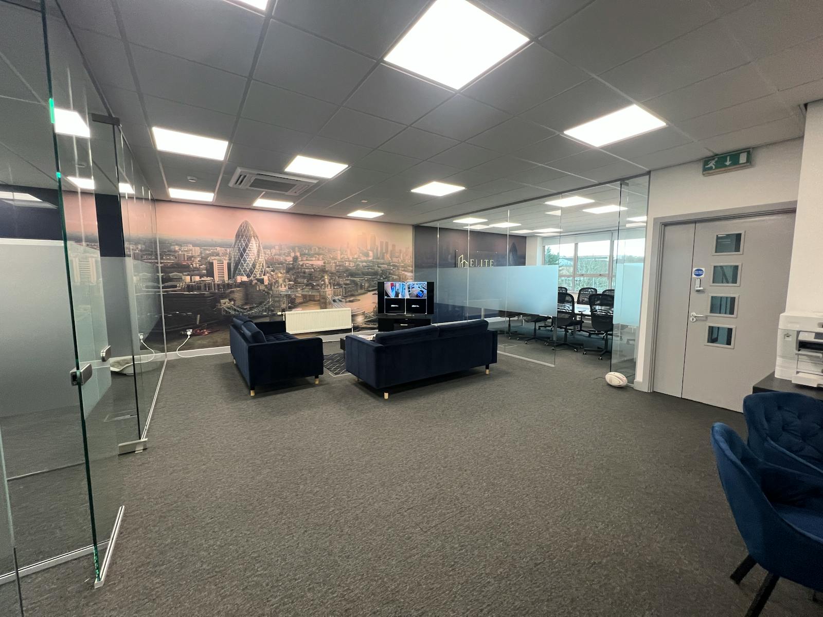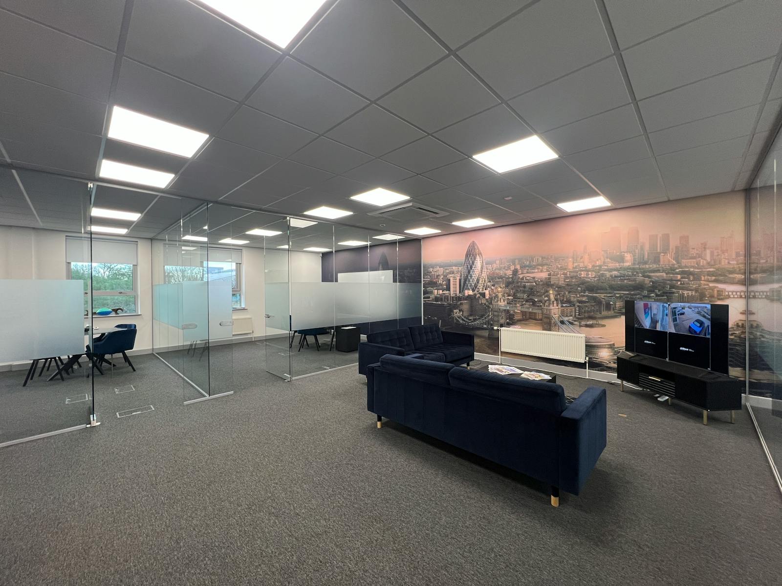 - Open plan layout with some partitioned private offices/meeting rooms
