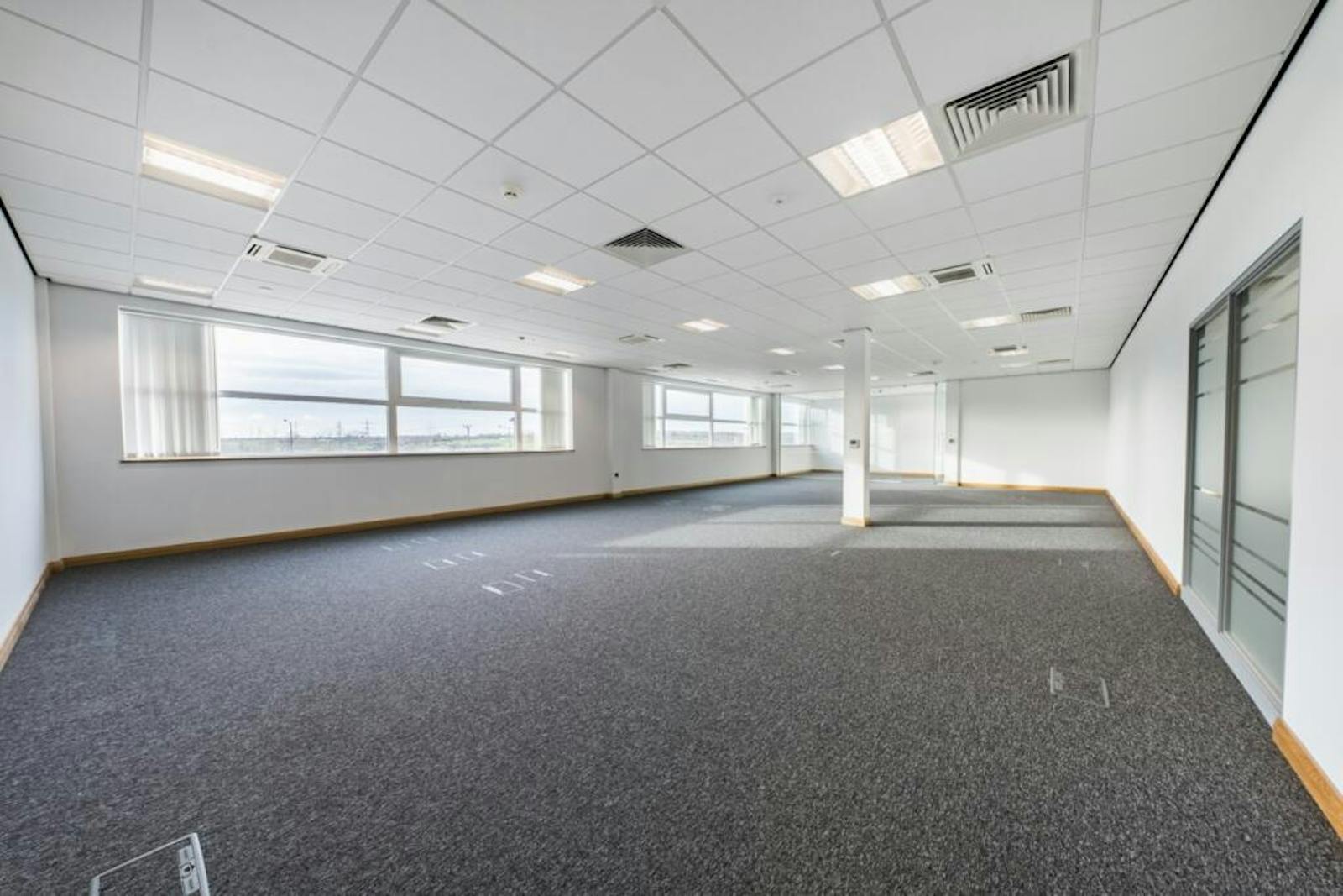 The property comprises offices on three floors within the Logistics Centre fitted to a Category A standard. The Suite available is located on the first floor, which has been fitted with suspended ceiling, LED lighting, and Air conditioning.
